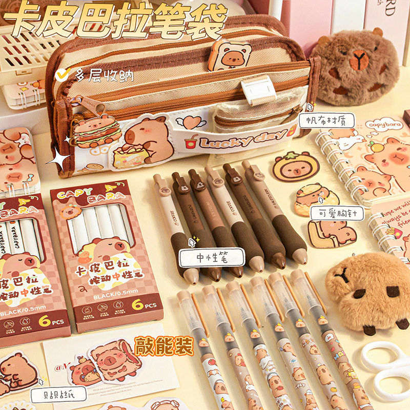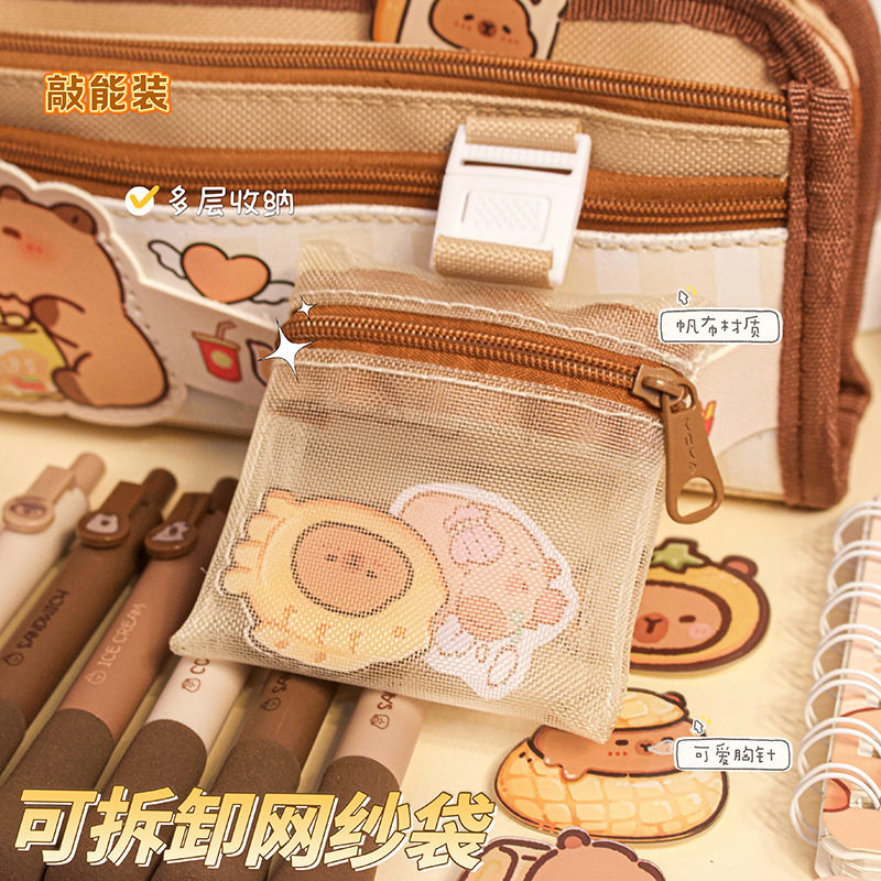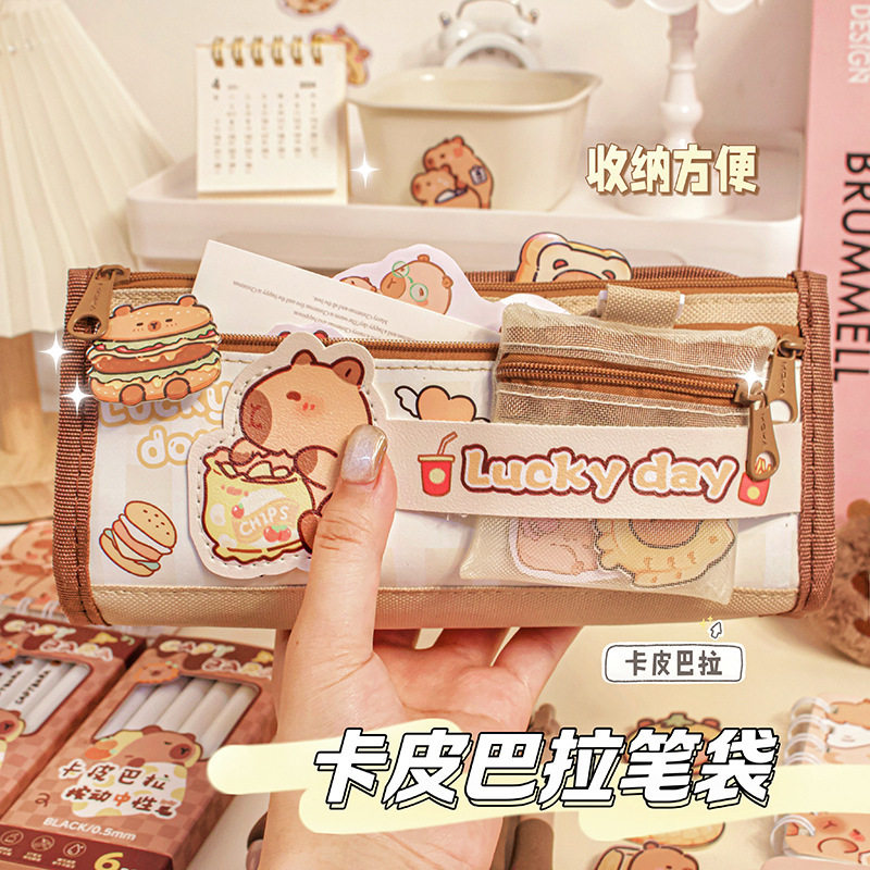 网红卡皮巴拉笔袋女生小学生2025新款高颜值大容量文具笔袋高颜值初中生可爱超火爆款卡通零钱包铅笔盒小众