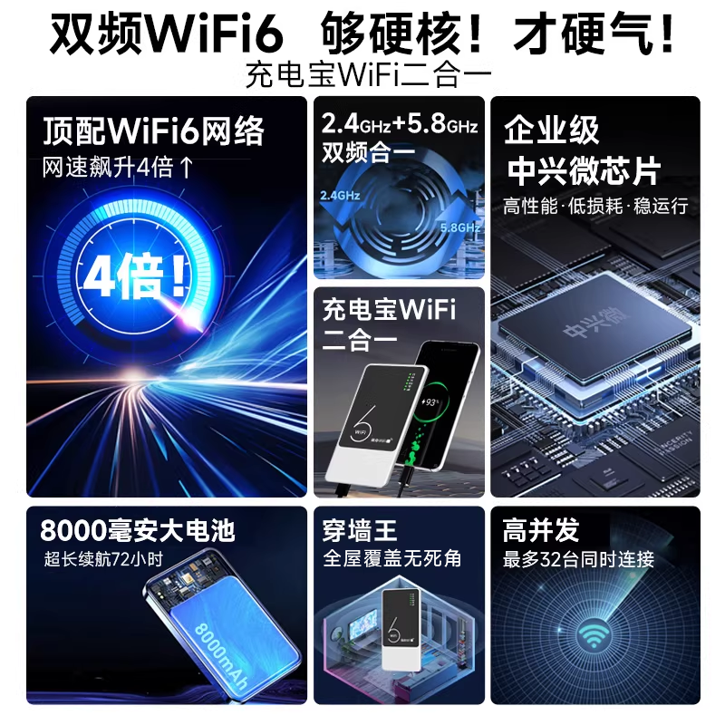 移动随身无线wifi2025新款充电宝二合一便携带无限4g流量上网卡无线网络随身wifi全国通用家用车载路由器热点