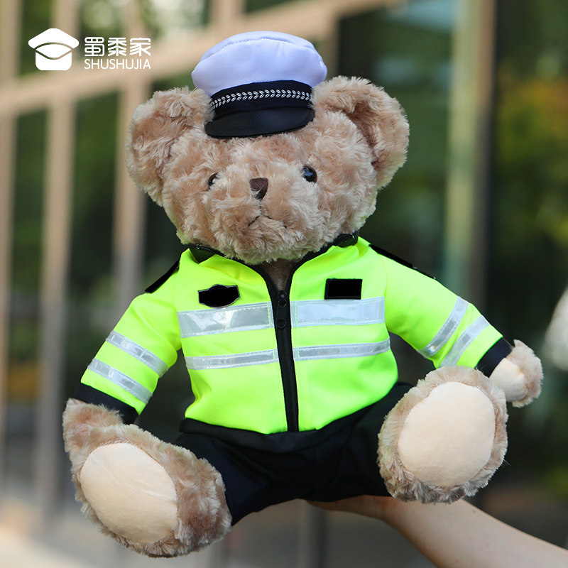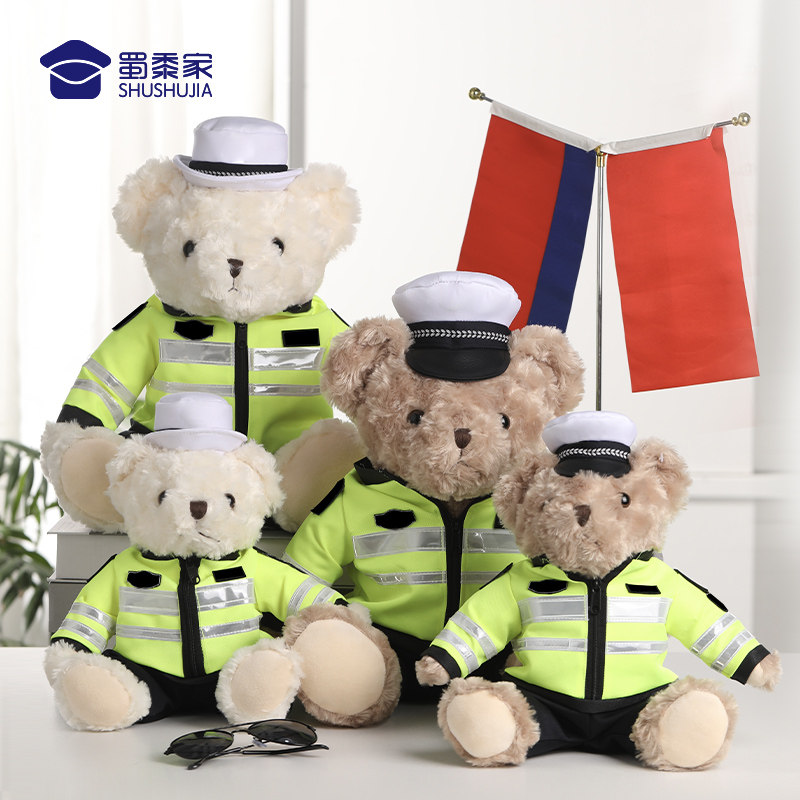 蜀黍家警察小熊交警熊毛绒玩具公仔铁骑玩偶熊反光条骑行玩偶安全