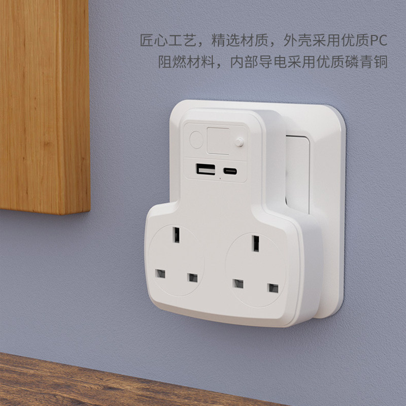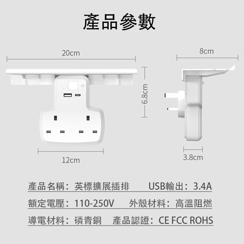 港版英规多功能扩展排插带置物架英式双苏USB夜灯TYPE-C英标插座