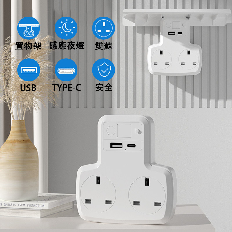 擴展雙蘇 帶夜光開關 USB TYPE-C充電