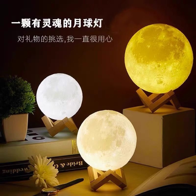 3D月球灯创意小夜灯卧室床头灯送女朋友闺蜜生日礼物小夜灯睡眠卧室床头台灯光浪漫星空灯床头氛围网红