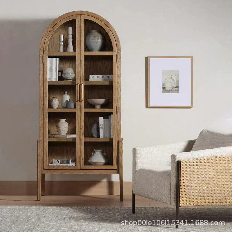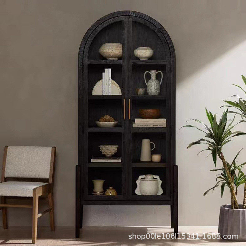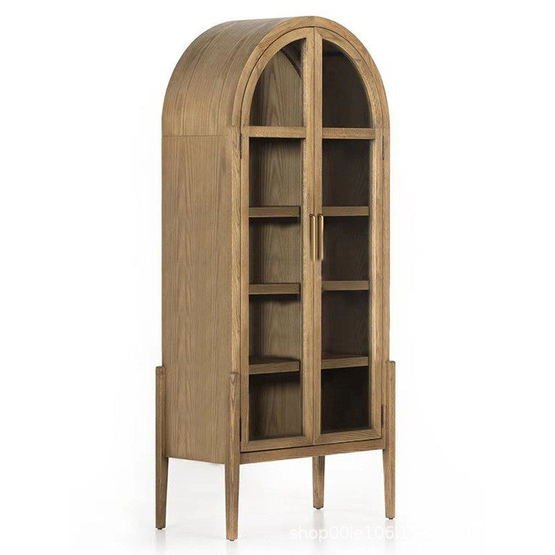 法式美式实木复中古弧形顶玻璃酒柜装饰柜餐厅客厅酒店民宿餐边柜