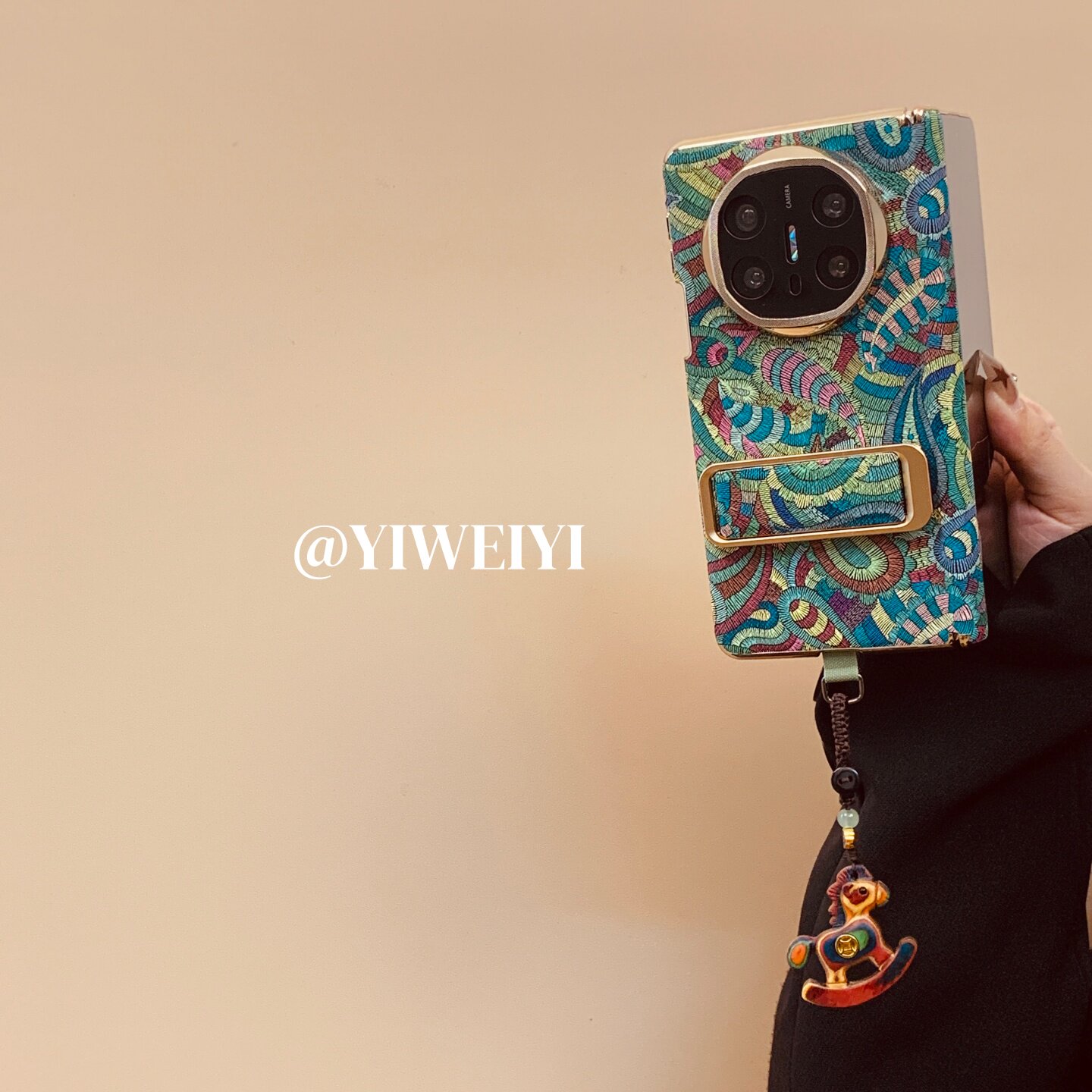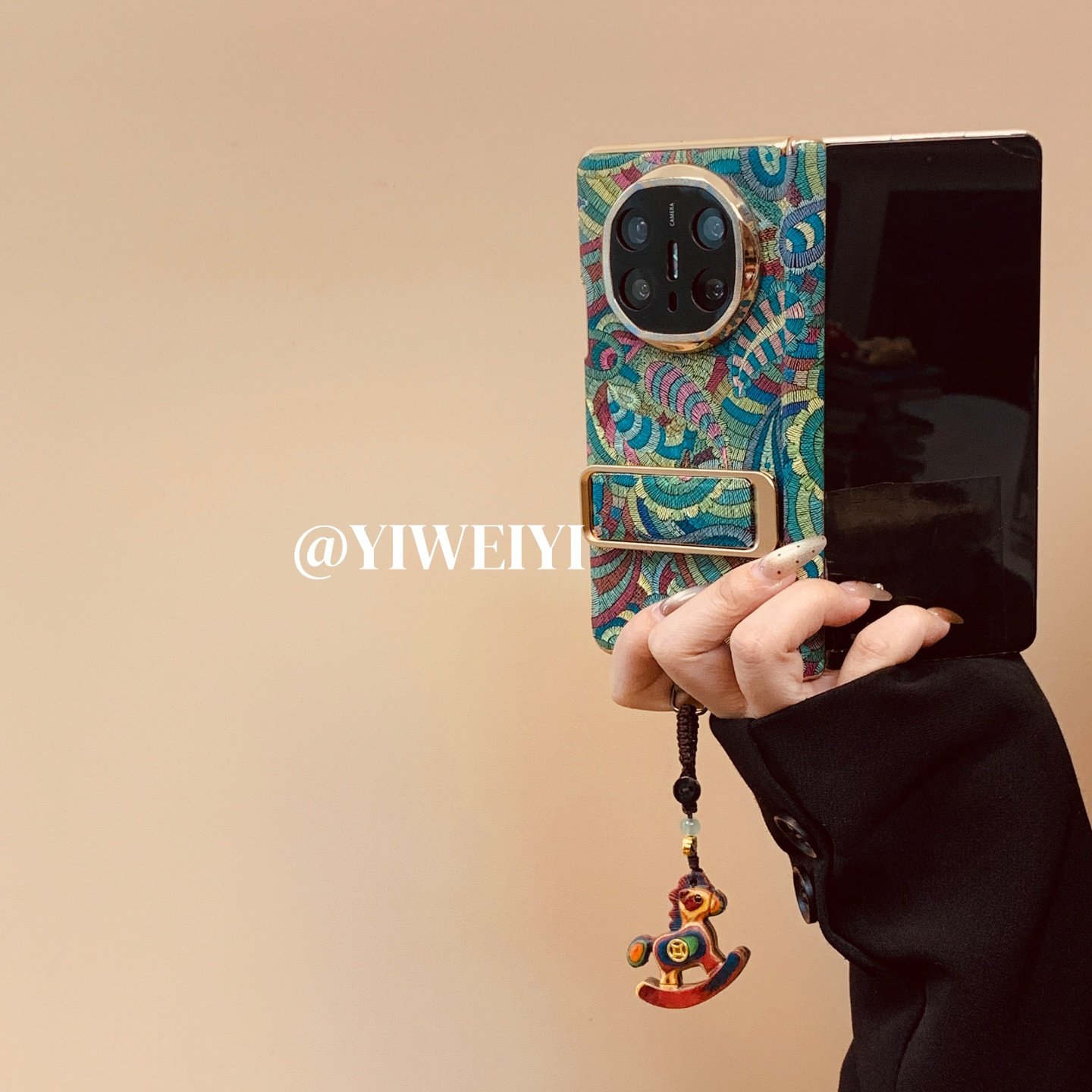 依维意 适用于华为matex7手机壳matex5典藏版双中轴腰果花折叠屏新中式matex3典藏版复古matex6摇摇木马挂件