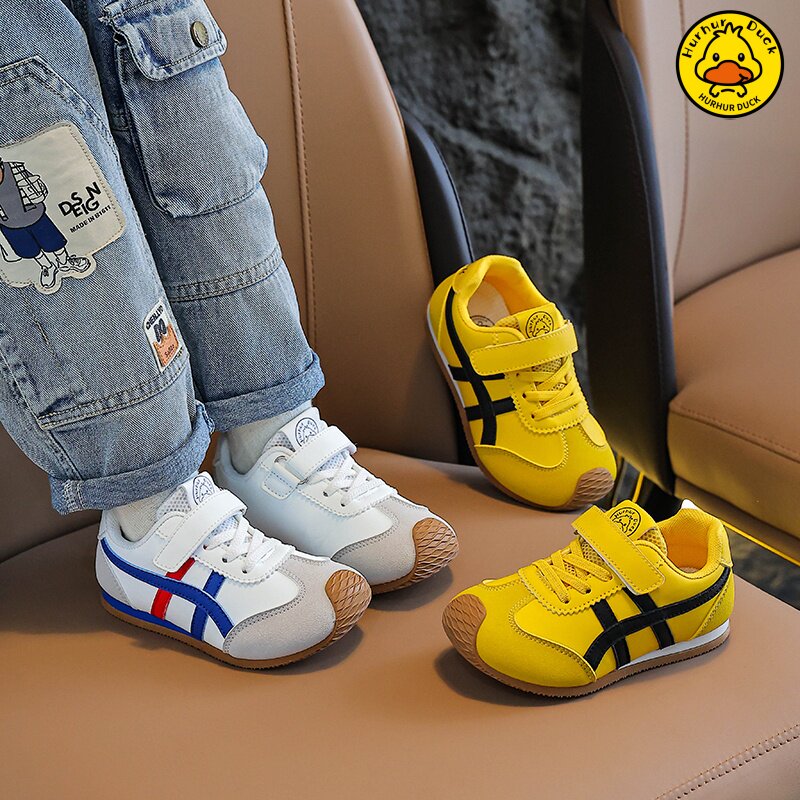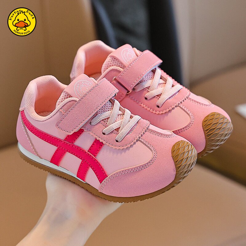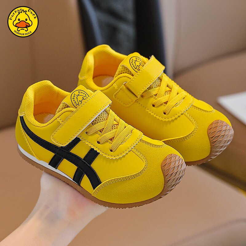 小黄鸭阿甘单网德训女童鞋子2025夏季新款透气儿童男童板鞋魔术贴
