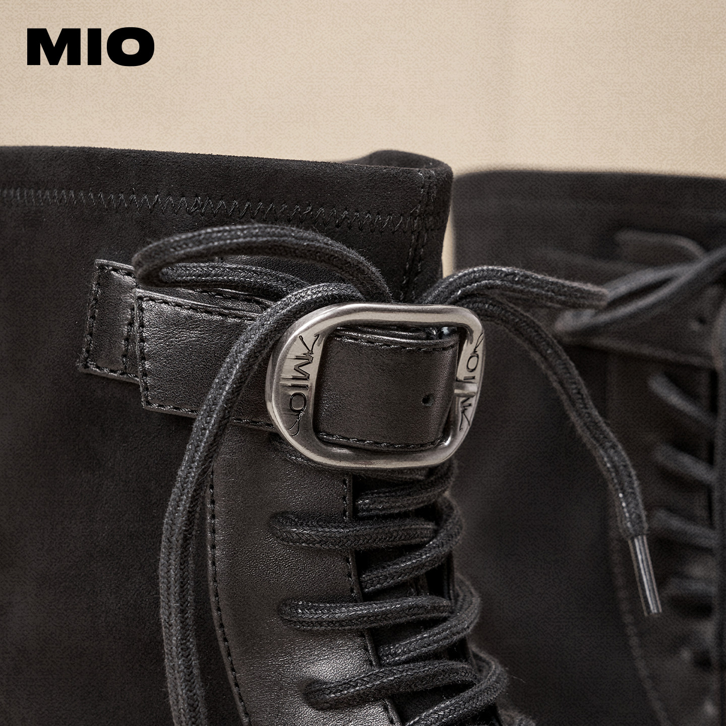 MIO米奥2025冬季新款圆头高跟短筒马丁靴复古扣带厚底增高女靴子