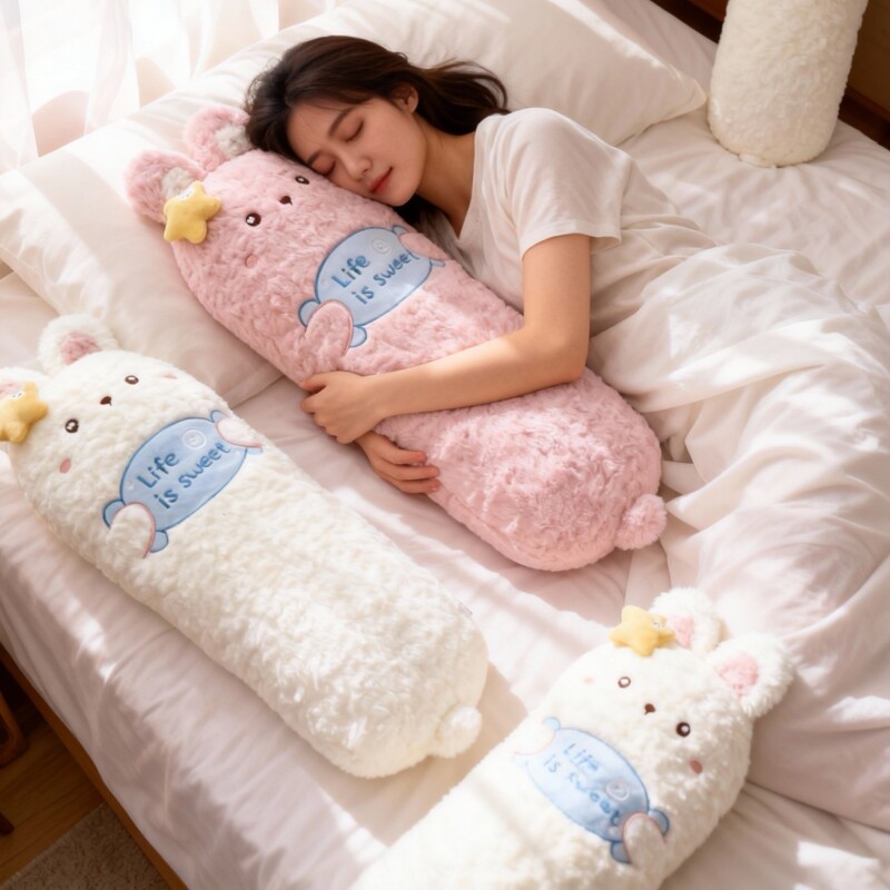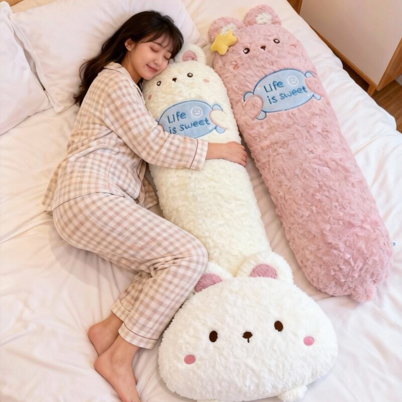 粉色小兔子长条玩偶女生床上睡觉夹腿抱枕毛绒公仔独立内胆可拆洗
