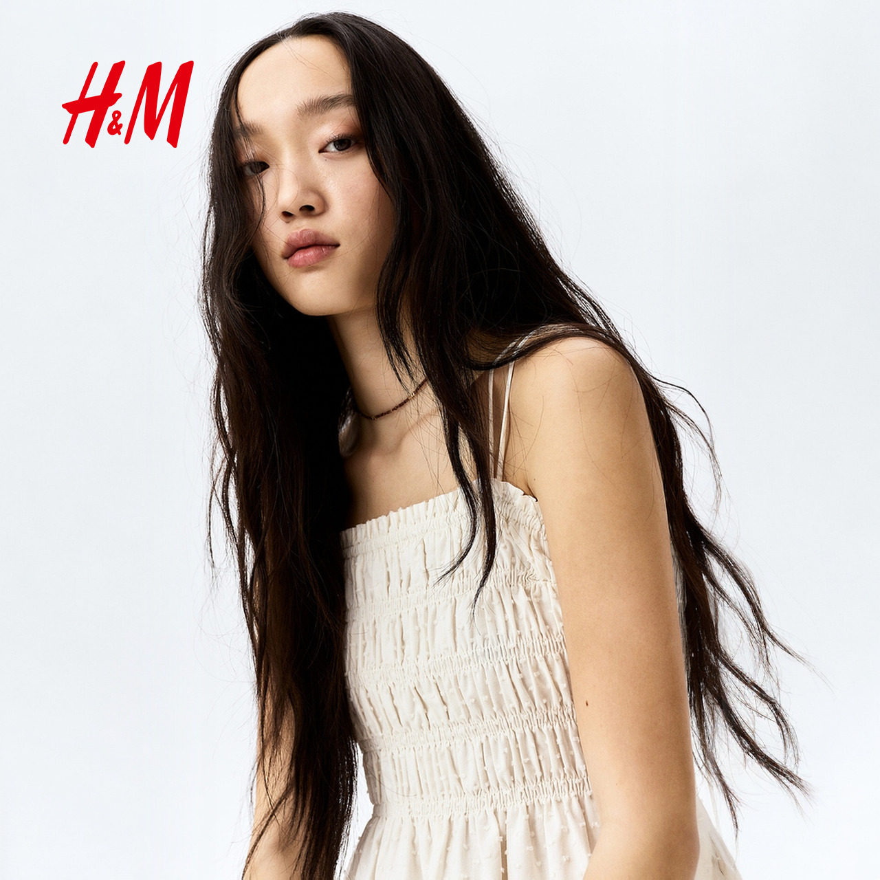 HM2025年冬季新款女装时尚休闲上身缩褶棉质连衣裙1275782