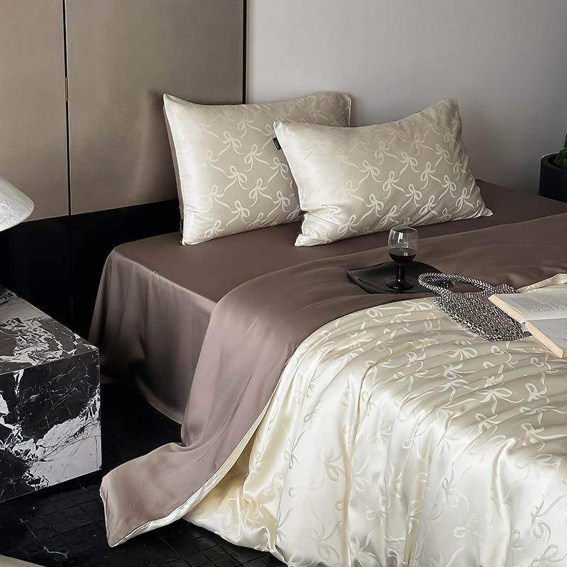 提花天丝四件套 夏季凉爽丝滑莱赛尔纤维三件套冰丝凉感裸睡床品