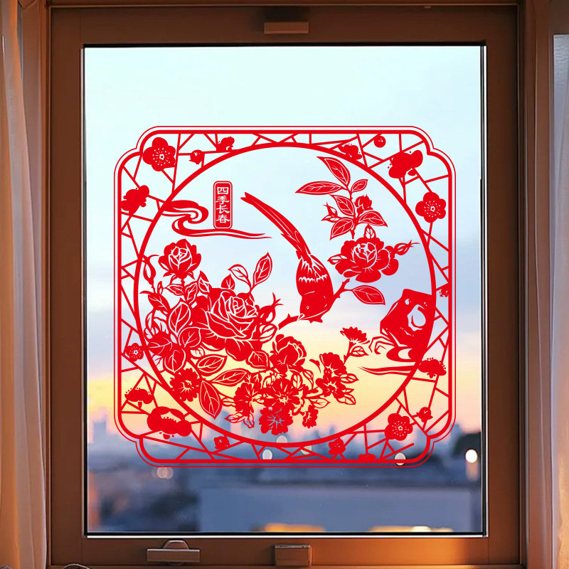 2026马年春节窗花静电贴玻璃贴贺年新年家装饰福字贴传统乔迁剪纸