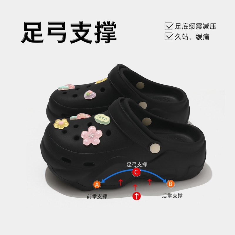 超火足弓支撑洞洞鞋女款夏季外穿2025新款厚底防滑沙滩包头凉拖鞋