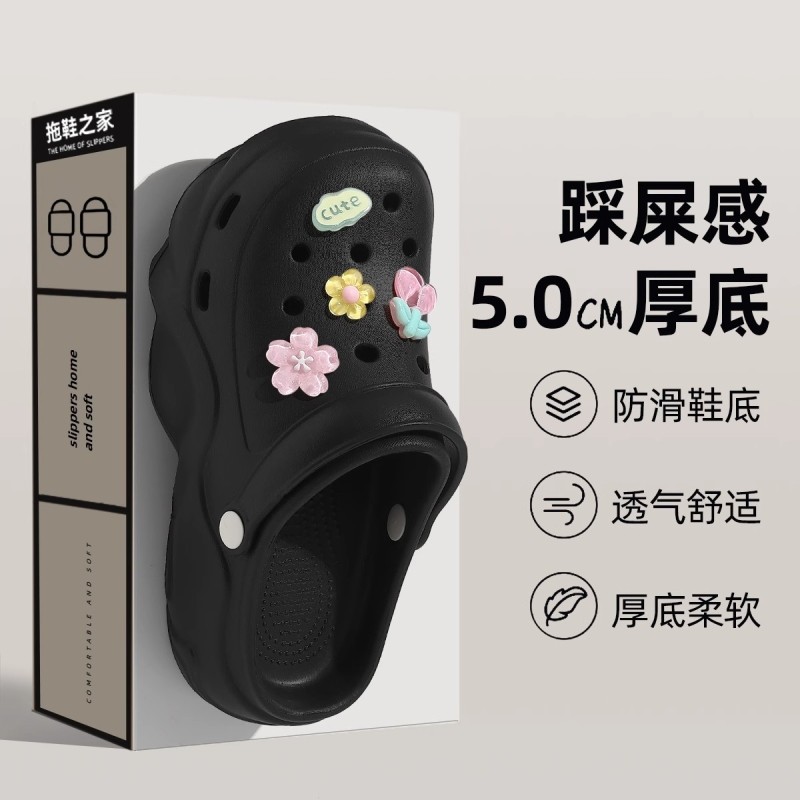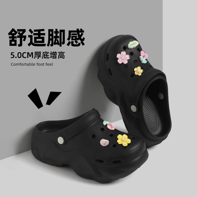 厚底洞洞鞋女款夏季外穿2025新款沙滩松糕婚纱增高跟凉鞋黑色拖鞋