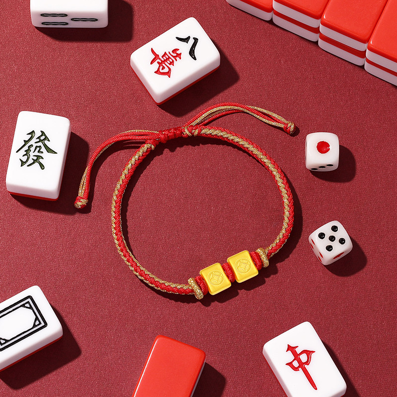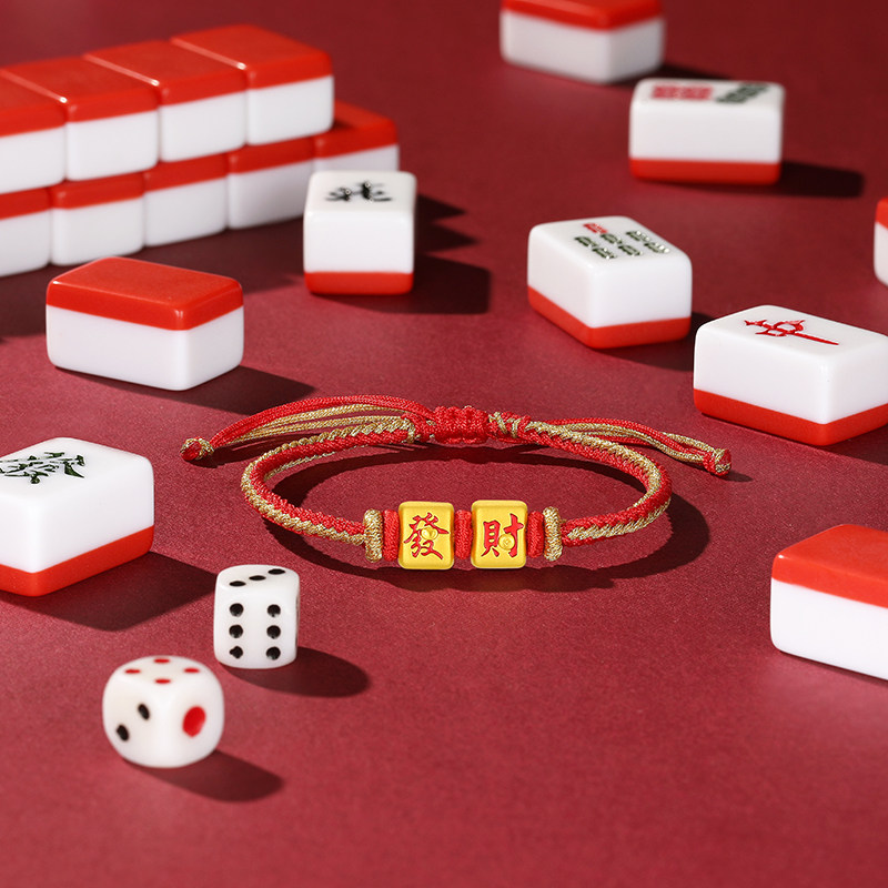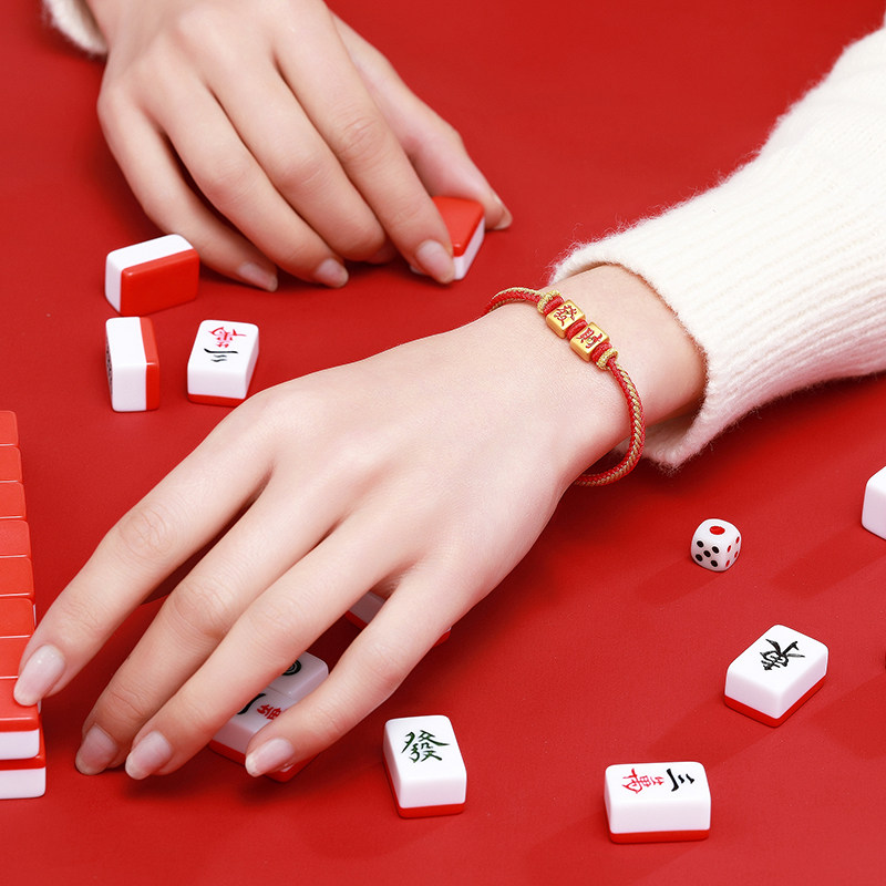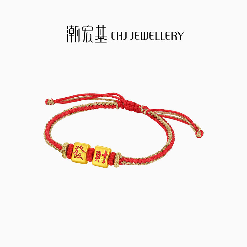 潮宏基好事发生聚财黄金手绳足金手链转运串珠5D硬金麻将女礼物