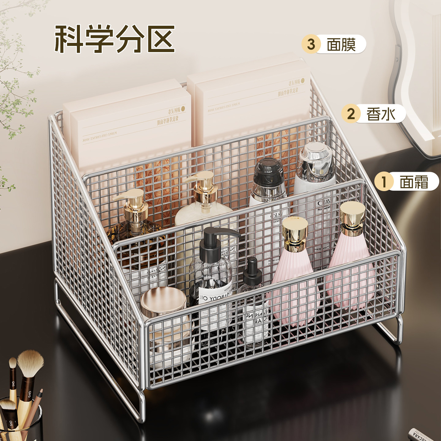 面膜收纳盒亚克力化妆品分格盒透明桌面大容量梳妆台护肤品置物架