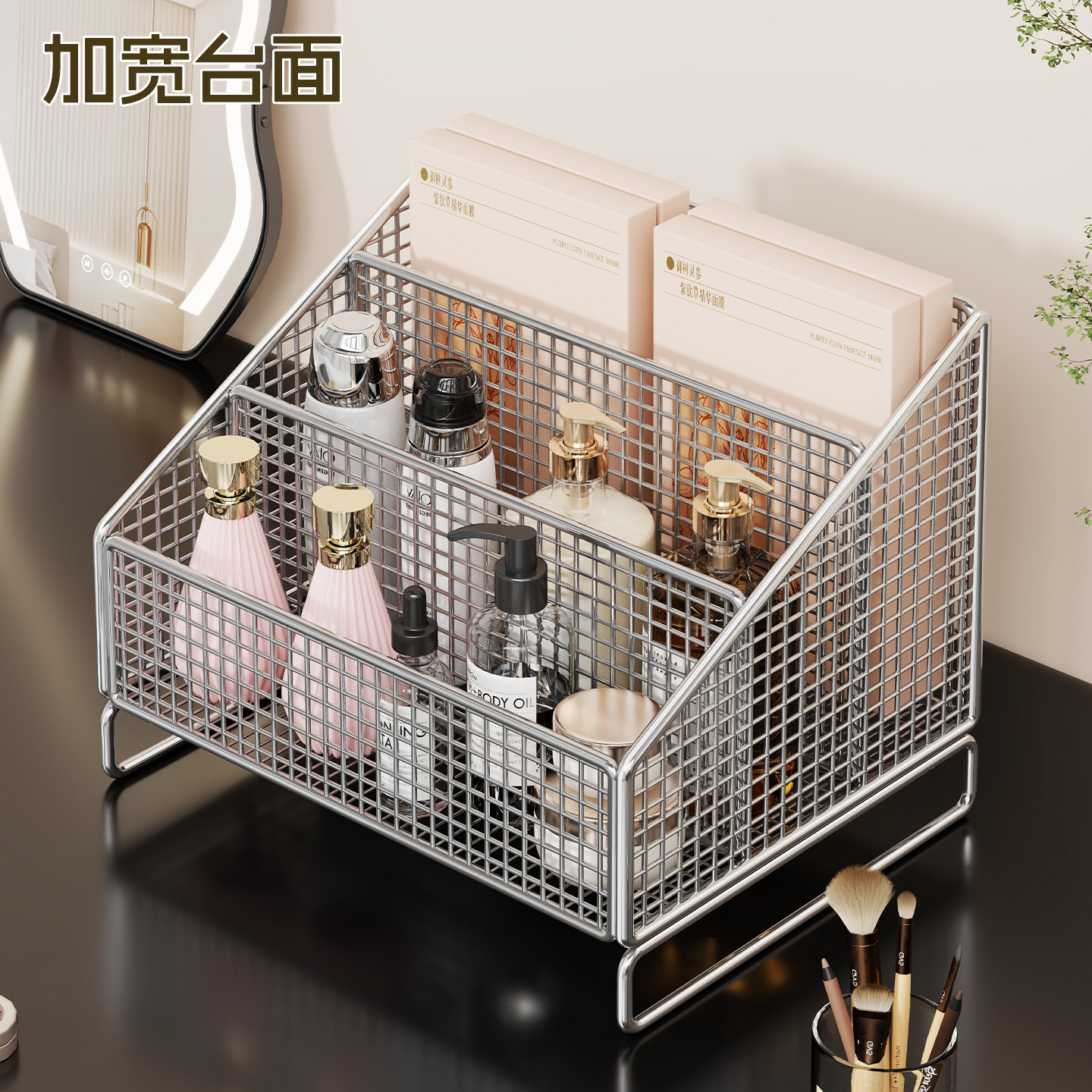面膜收纳盒亚克力梳妆台透明分格盒桌面化妆品大容量护肤品置物架