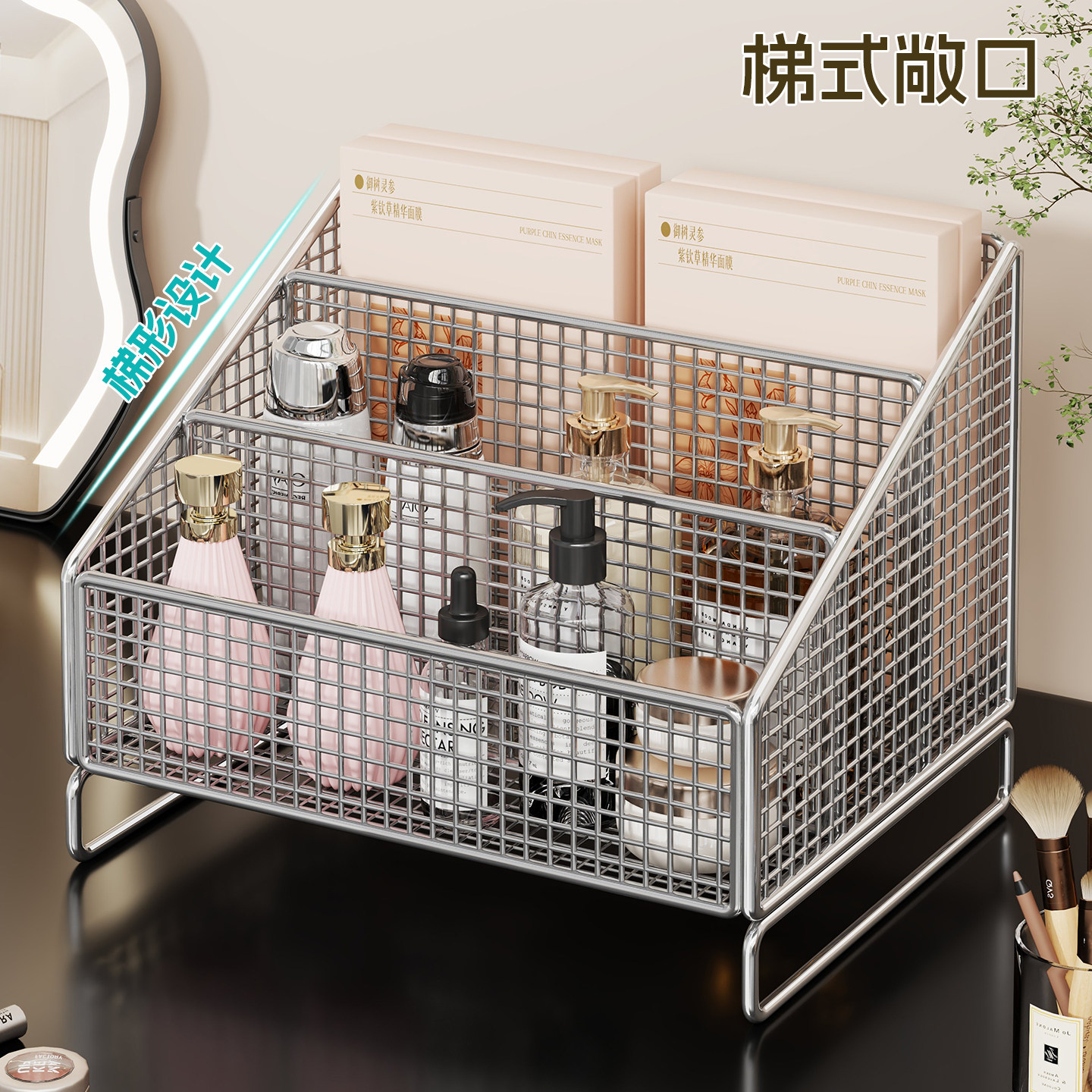 化妆品收纳盒洗漱台多层口红放置架台面阶梯式护肤品卫生间置物架
