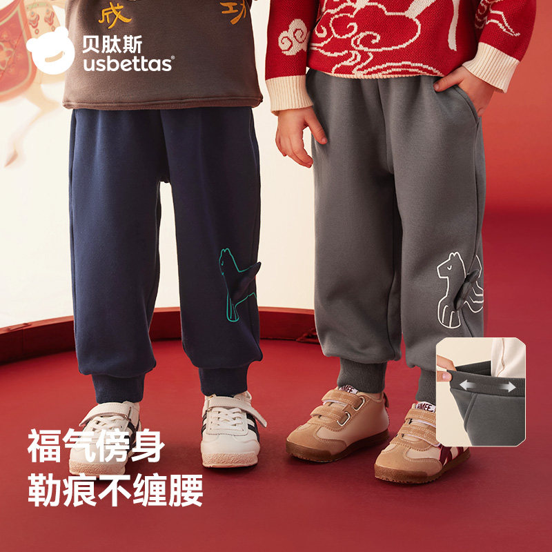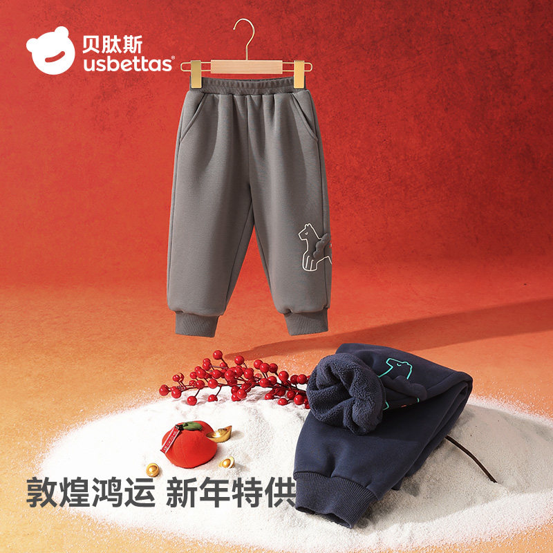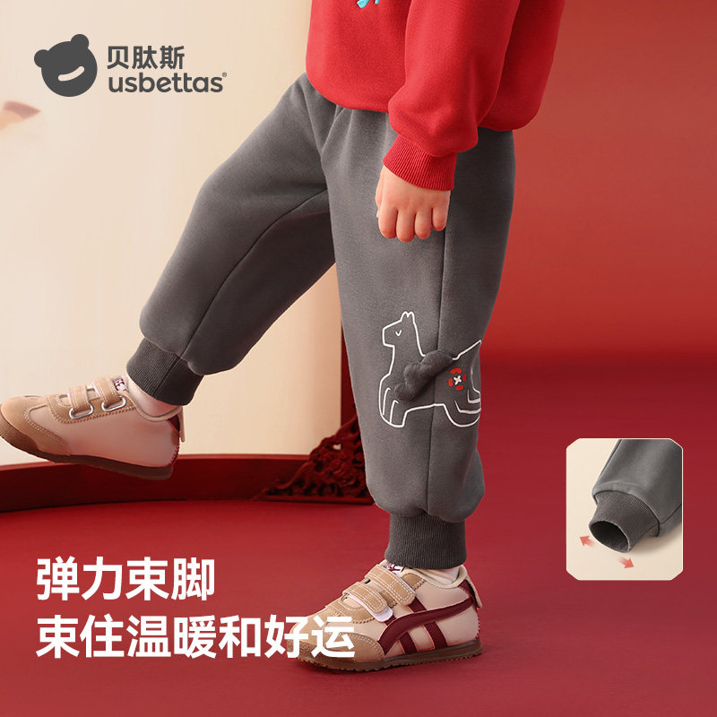 贝肽斯儿童裤子新款冬装拜年裤男女宝宝卫裤加绒保暖鸿运天马长裤