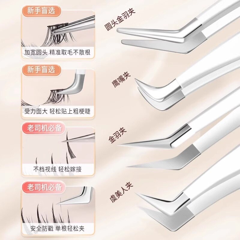 高精密假睫毛镊子专业嫁接种全套装工具双眼皮贴美睫专用金羽夹子