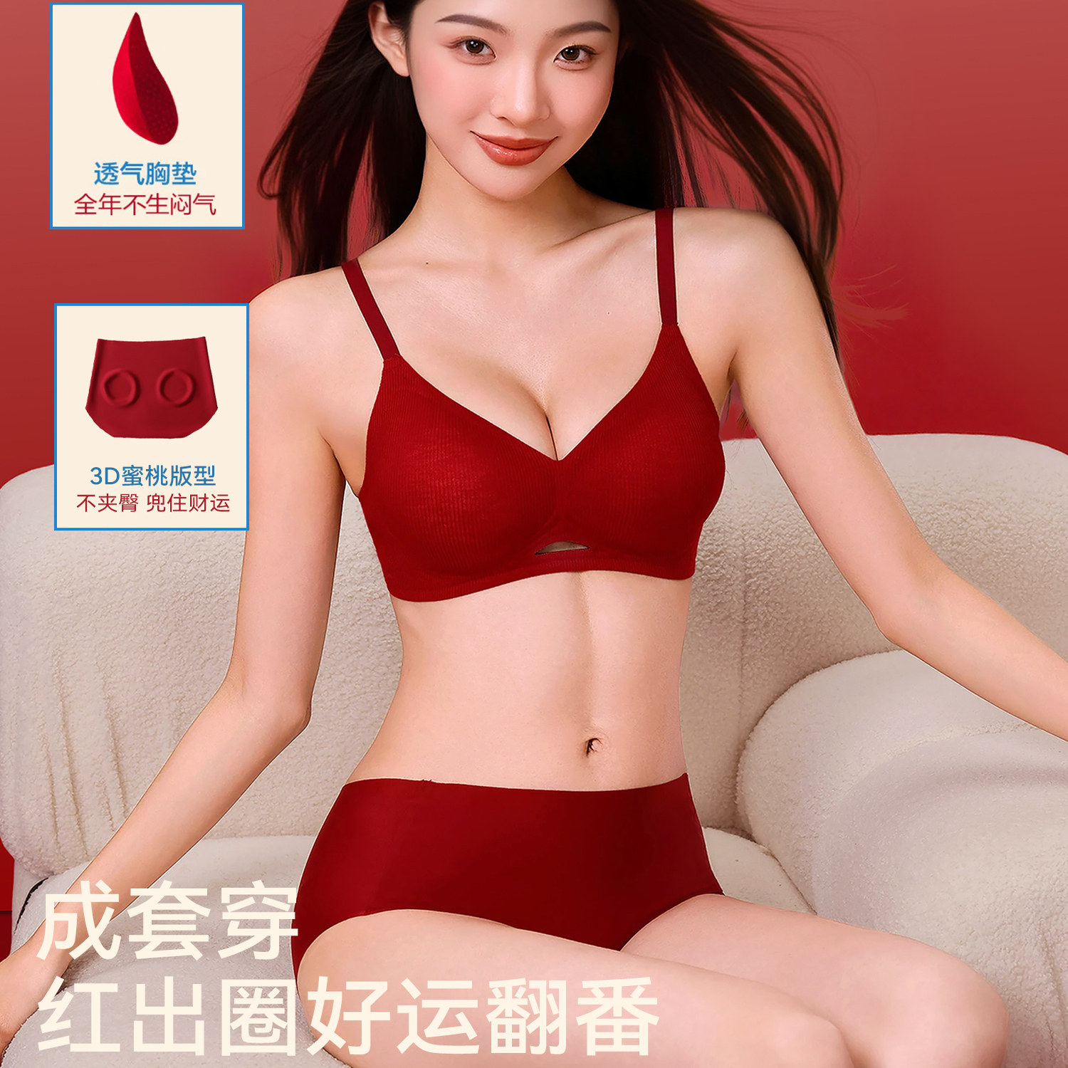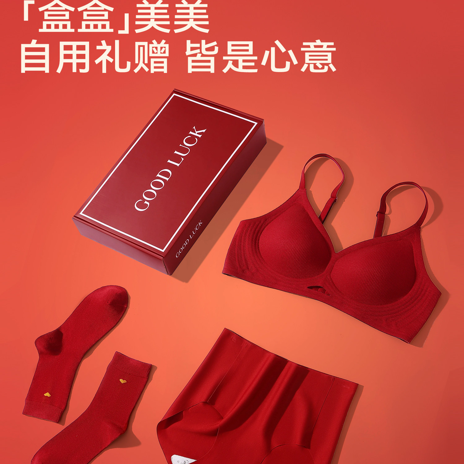 红色内衣女聚拢小胸本命年结婚新娘内裤文胸套装礼盒马年2026新款