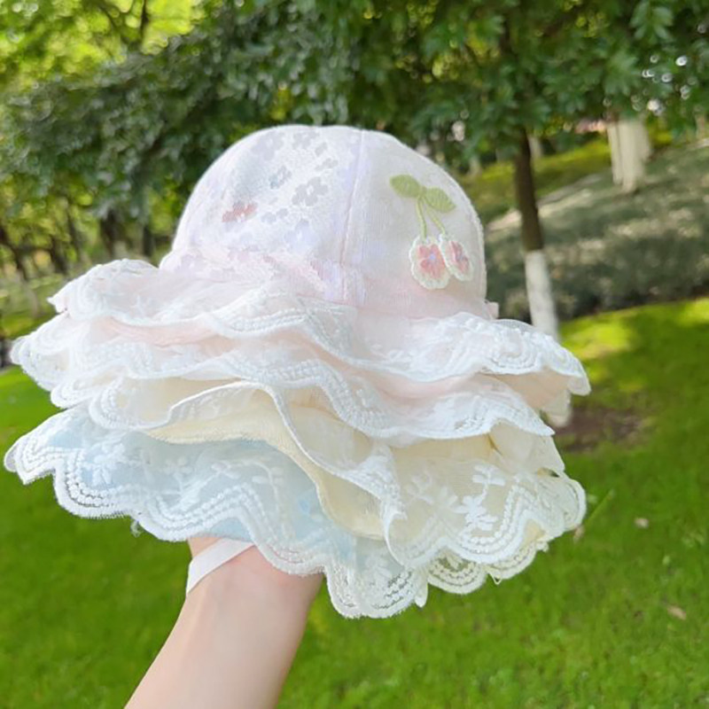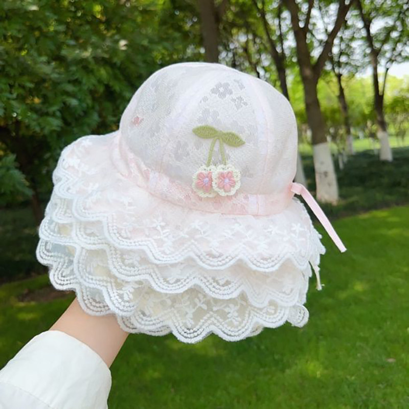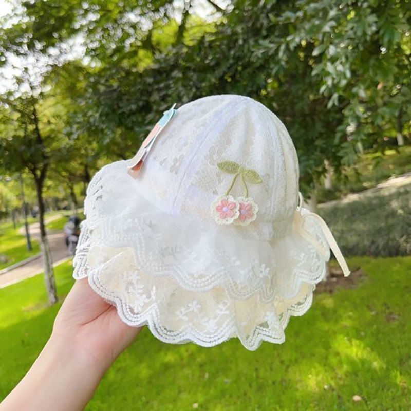 婴儿帽子春夏季宝宝防晒蕾丝公主薄款遮阳帽渔夫帽遮阳盆帽子防风