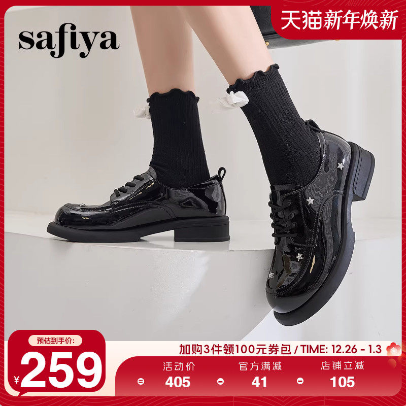 Safiya索菲娅漆皮圆头百搭粗跟软底英伦星星小皮鞋女款系带乐福鞋