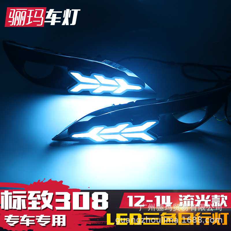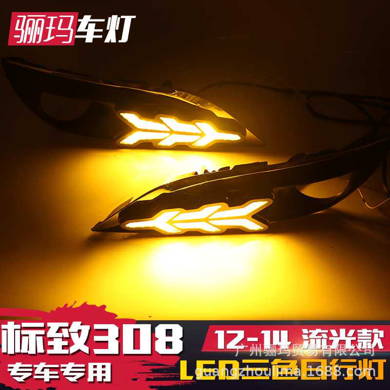适用于东风标致308日行灯 308改装led日间行车灯流光转向灯雾灯