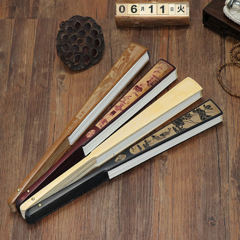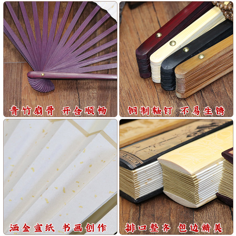 宣纸折扇空白折扇子竹制折扇女夏折扇男古风空白纸扇子定制书法国画空白扇面折扇随身文玩扇折扇雕刻镂空折扇