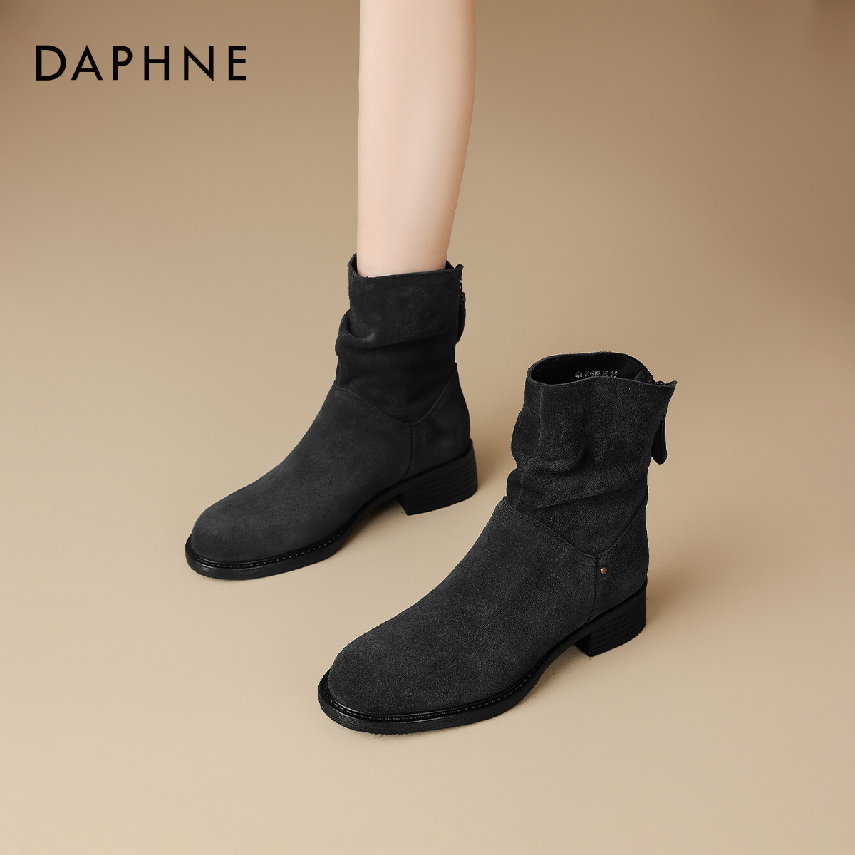 达芙妮勃肯短靴女春季春款平底堆堆靴磨砂瘦瘦靴子2026新款马丁靴