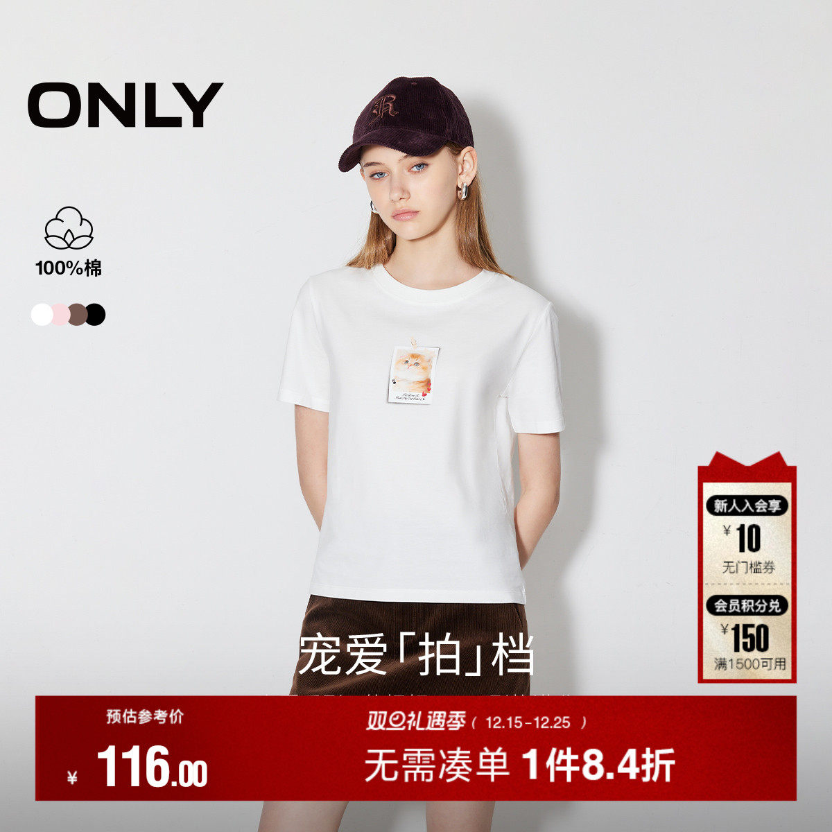 ONLY2025夏季新款可爱百搭纯棉印花正肩短袖T恤女|125101023