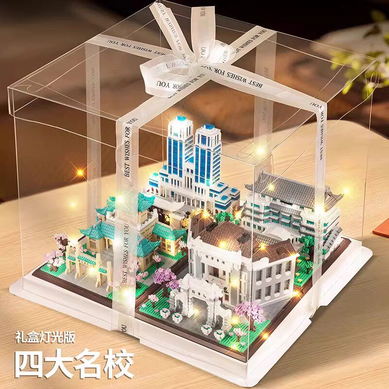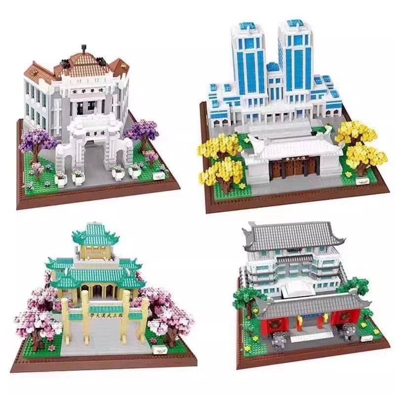 兼容乐高北京清华大学积木高难度3d立体拼图建筑模型男孩拼装玩具