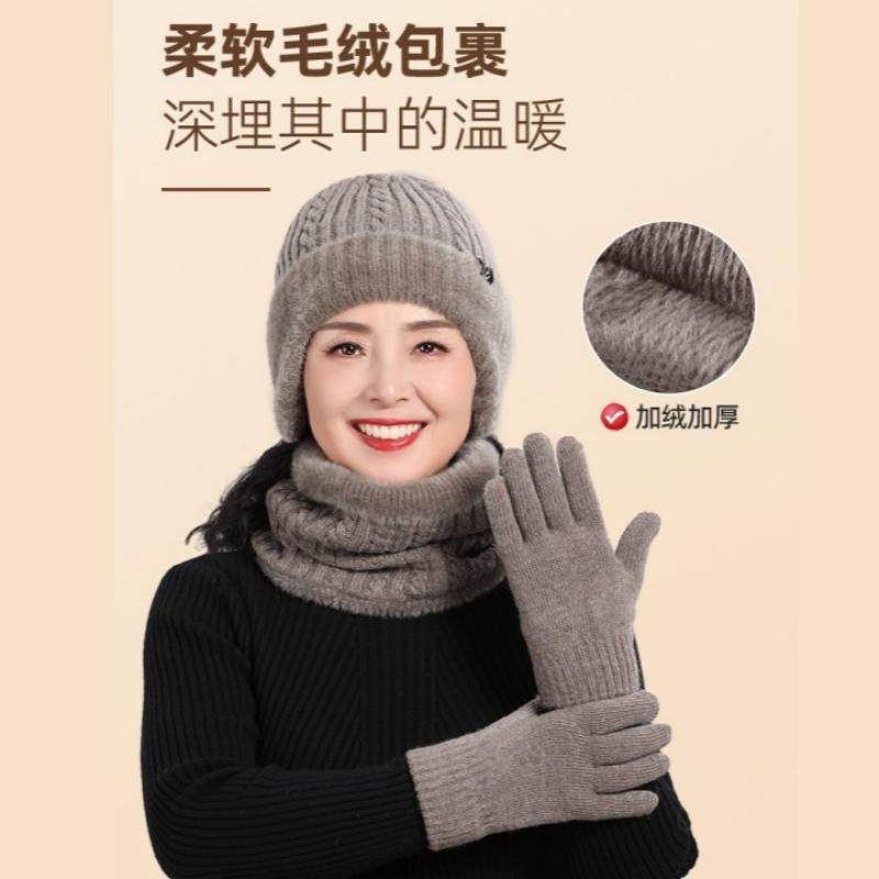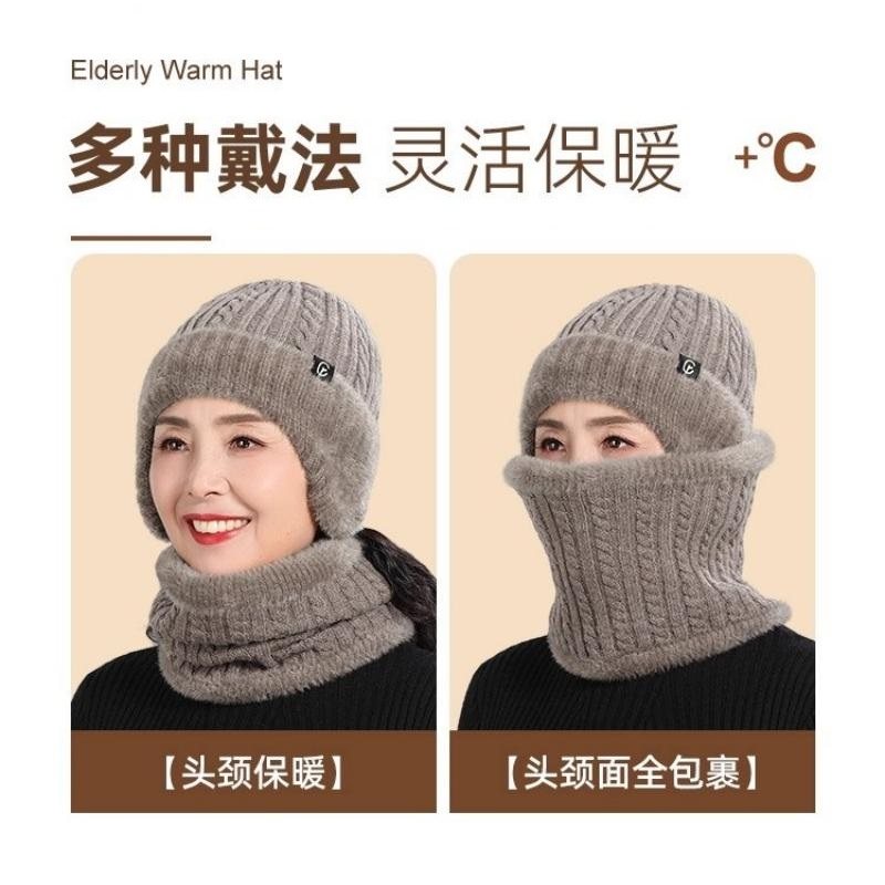 老年人羊绒毛线帽子女士中老年人妈妈奶奶冬季加厚保暖护耳针织帽