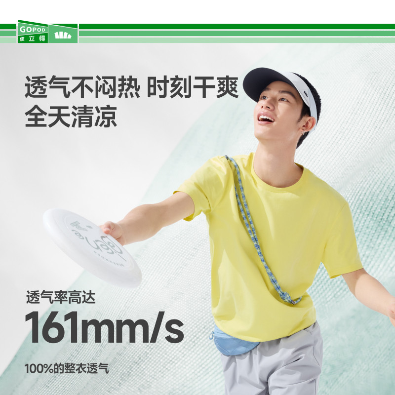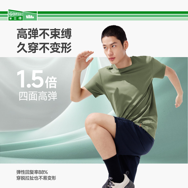 蕉下黑色短袖男款透气棉高弹挺括体恤打底衫内搭防激凸重磅t恤男