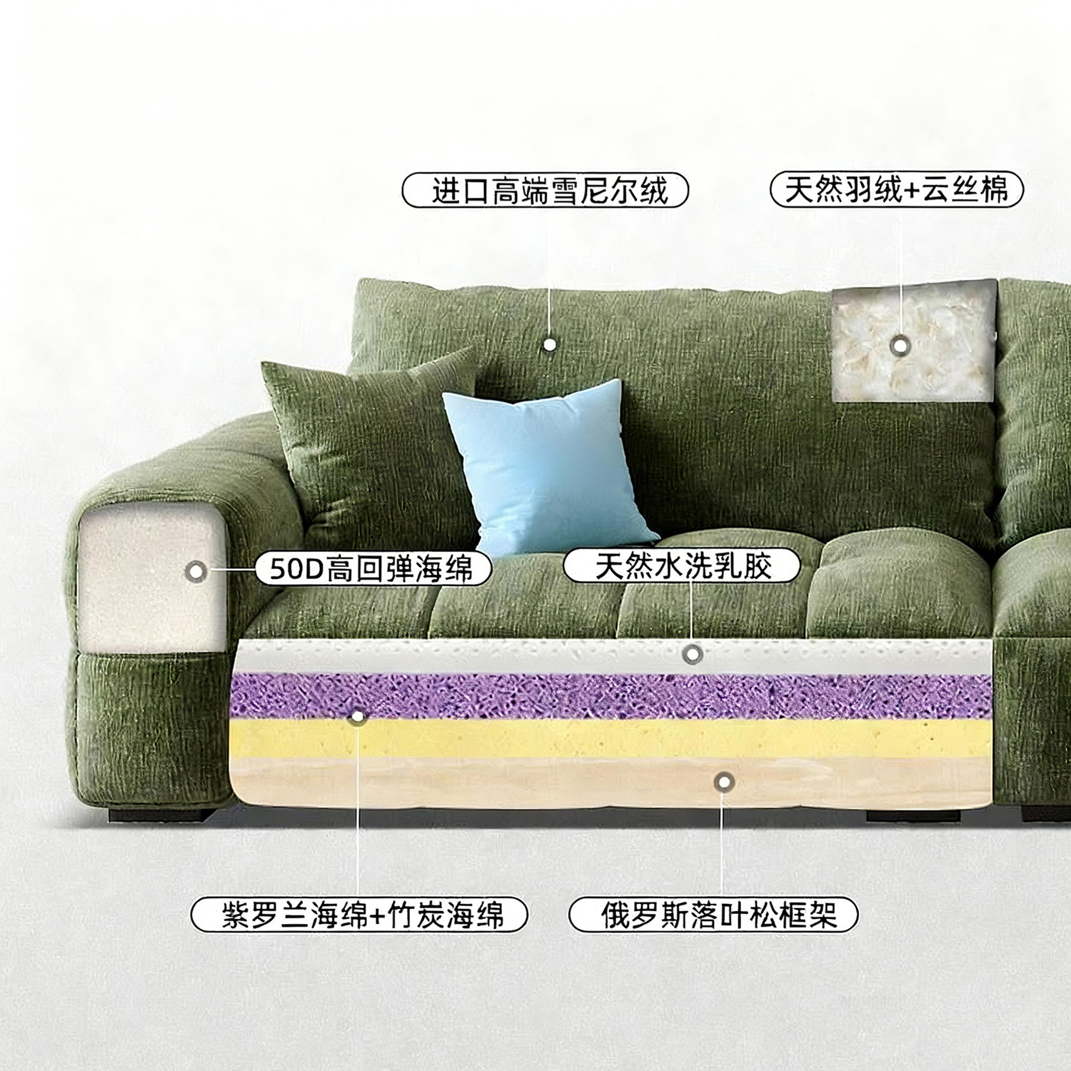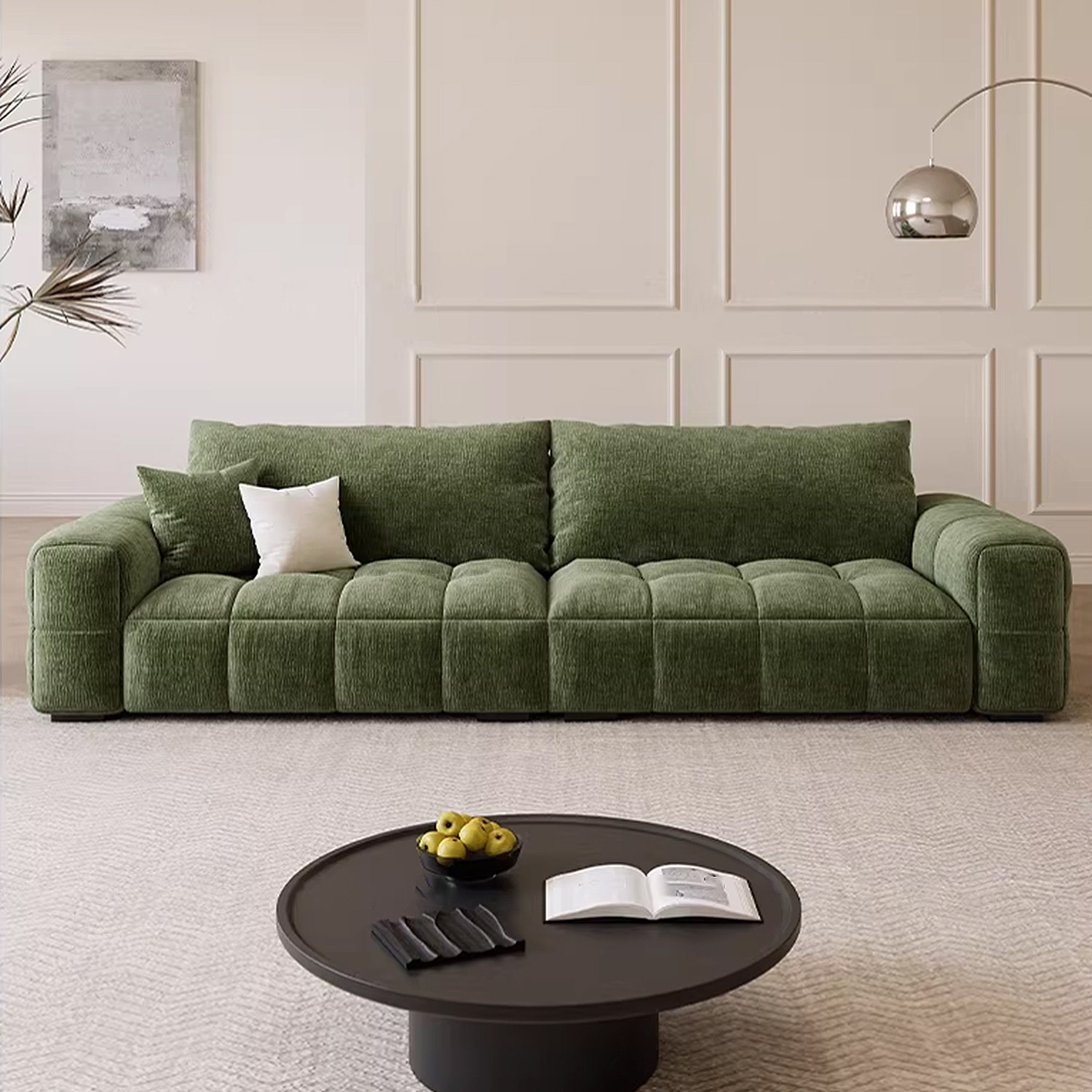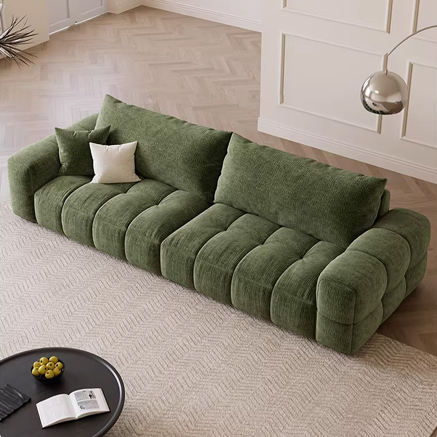 2026新款雪尼尔布艺沙发客厅法式三人位奶油风棉花糖直排泡芙沙发