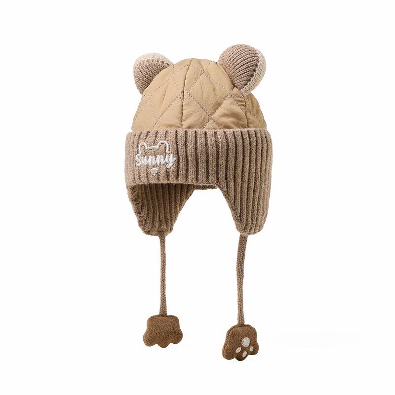 hugz儿童帽子男孩女孩保暖针织毛线帽秋冬季户外护耳防风熊仔帽子
