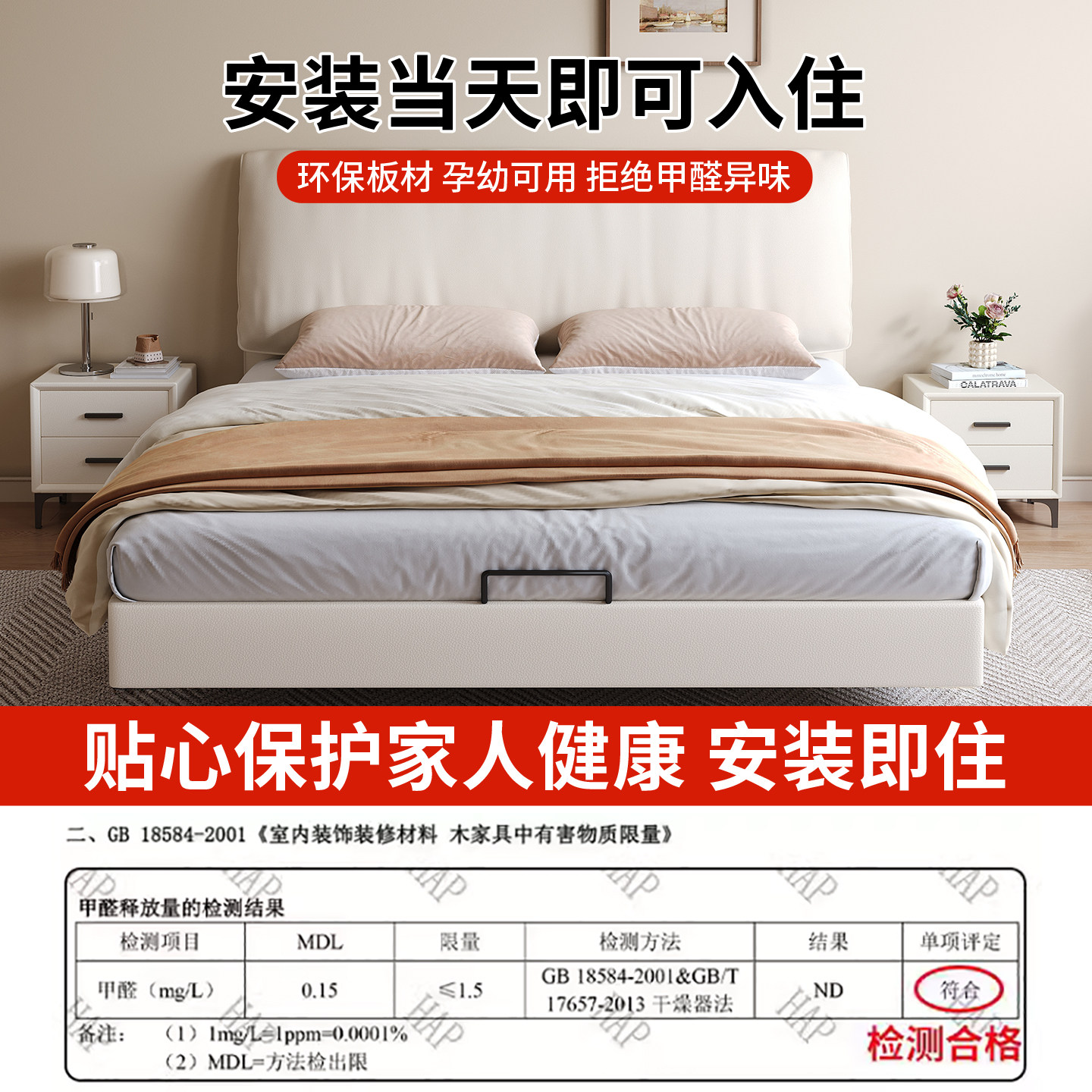 现代简约实木床1.8米主卧双人床1.5M单人经济型高箱储物大床