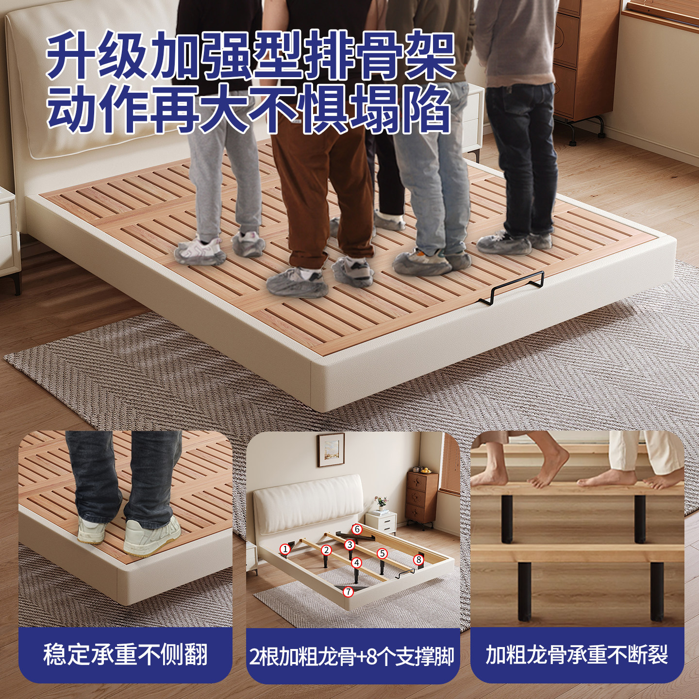 全实木无床头床架榫卯静音悬浮床小户型齐边排骨架床架可定制尺寸
