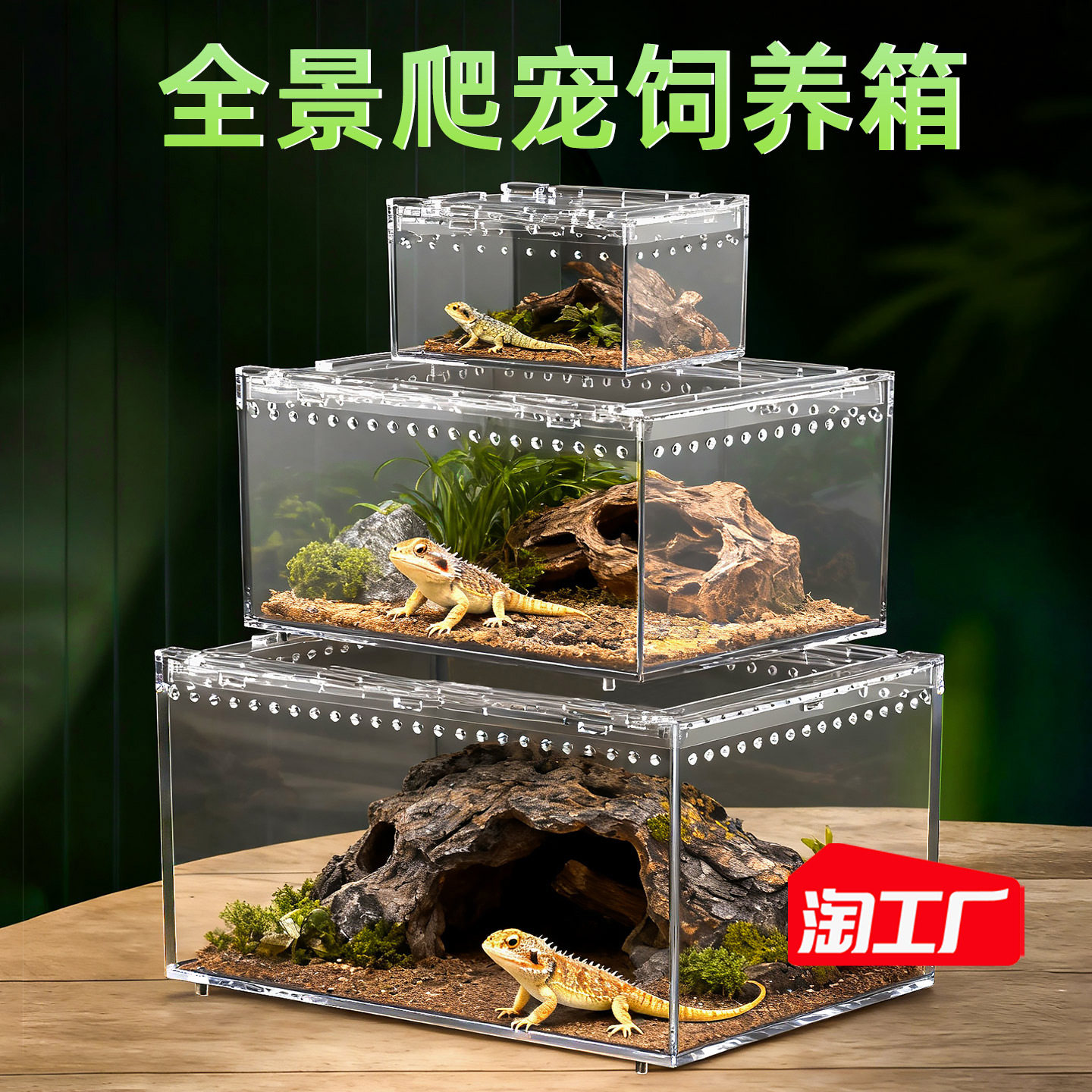 爬虫亚克力饲养箱全景观守宫寄居蟹大麦虫面包虫蛇角蛙蜥蜴繁殖箱