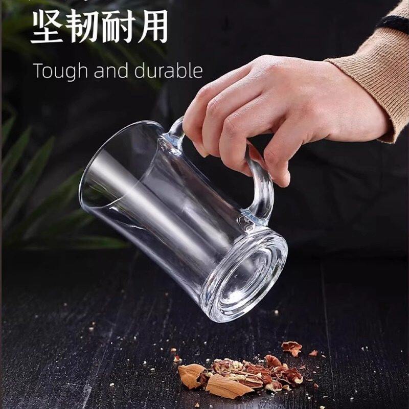 玻璃杯家用耐热茶杯套装水杯啤酒杯杯子大容量加厚带把单层泡茶
