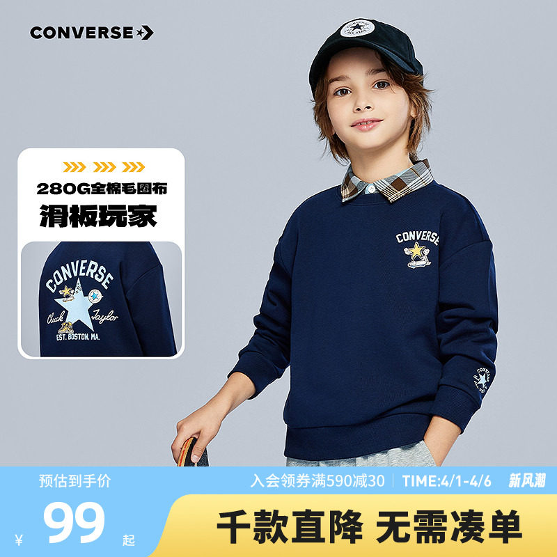 匡威童装男童卫衣青少年春季新款中大童休闲运动时尚亲肤保暖上衣