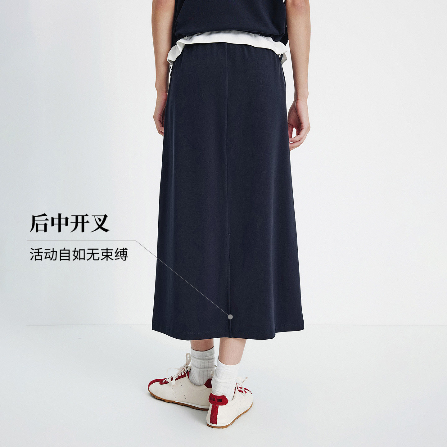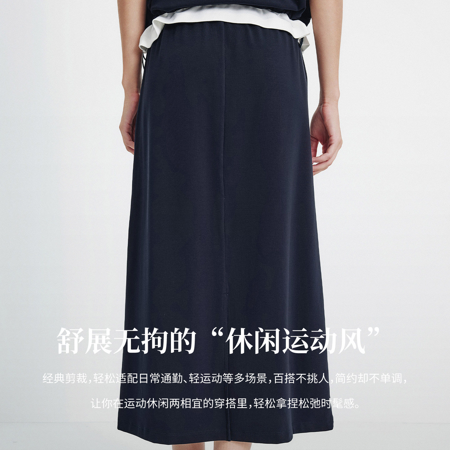 Navigare意大利小帆船蓝色高腰半身裙女2026春夏新款百搭a字裙子
