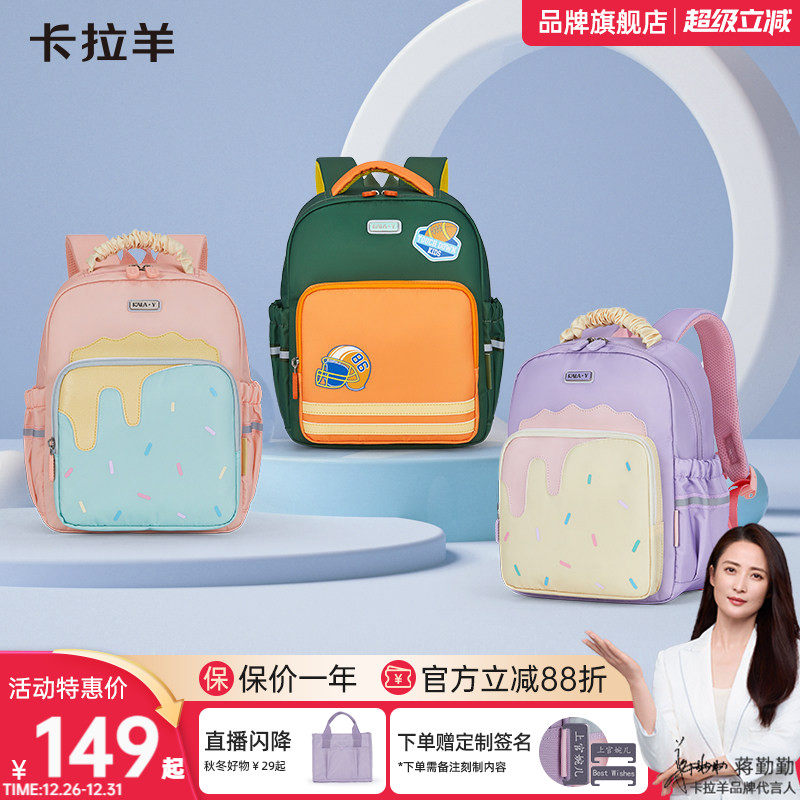 卡拉羊中学生书包减负风琴书包男女生青少年书包小学生书包儿童双肩包男孩大容量女孩防水书包品牌旗舰正品