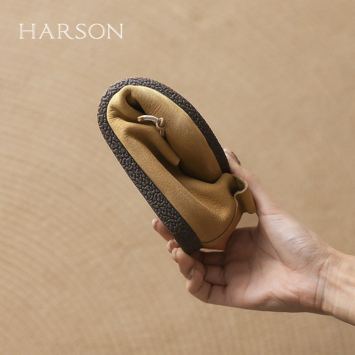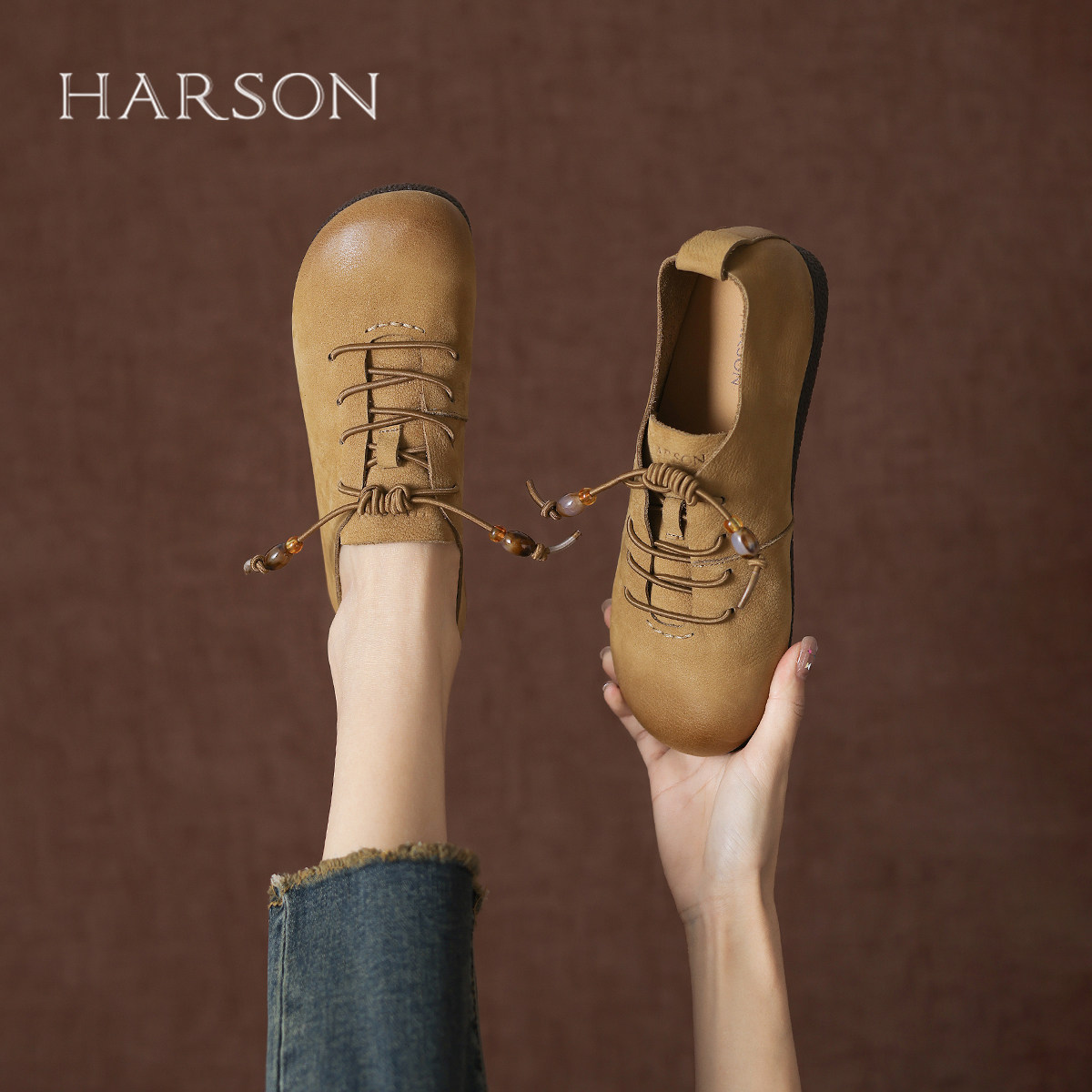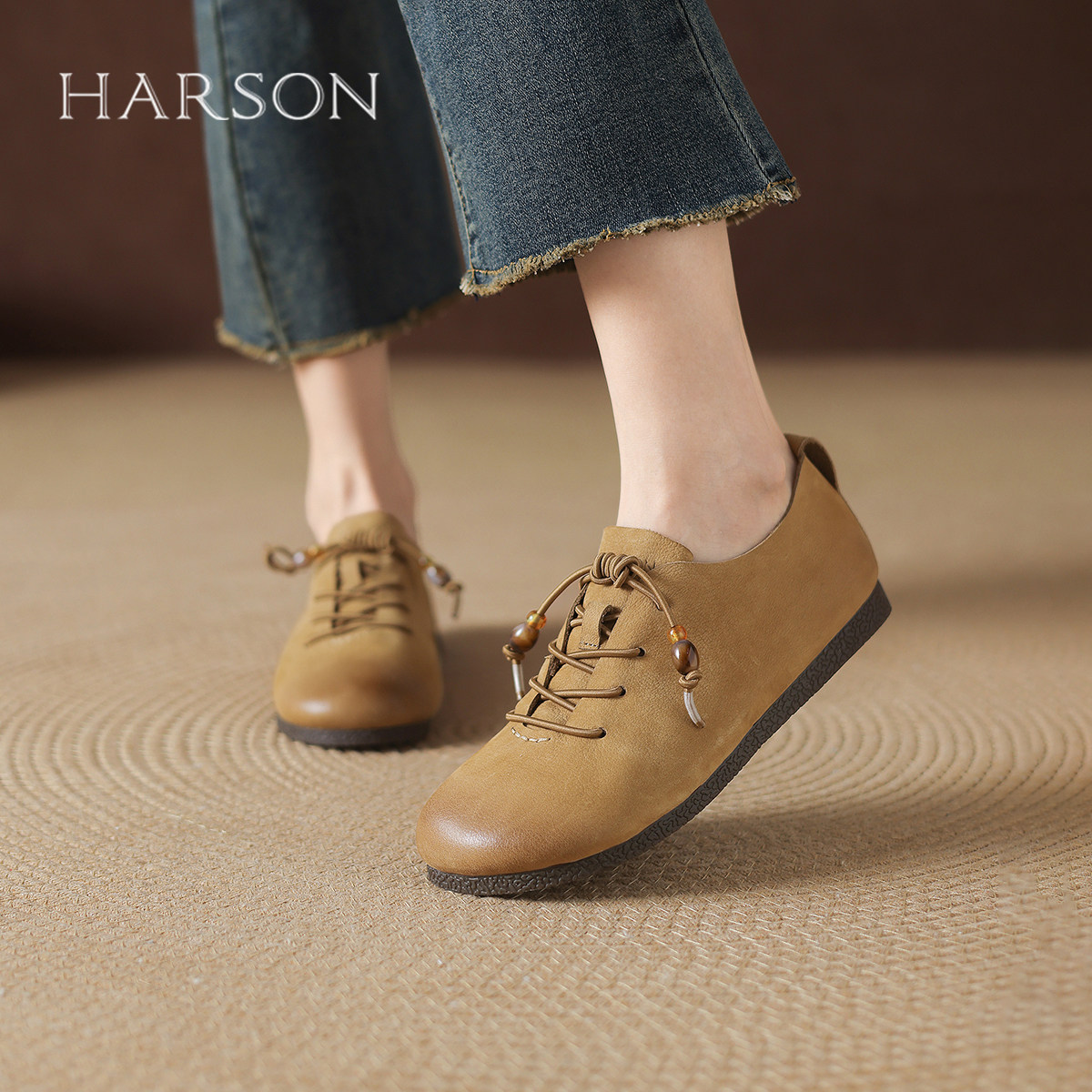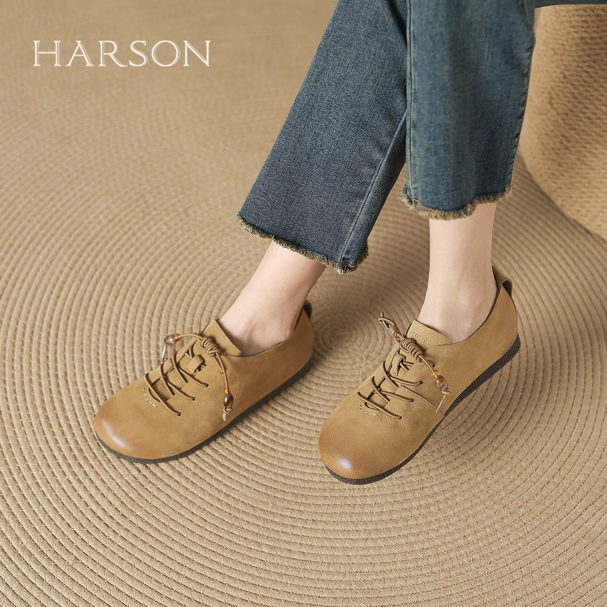 哈森真皮勃肯鞋女2025秋季新款百搭休闲运动鞋一脚蹬平底深口单鞋