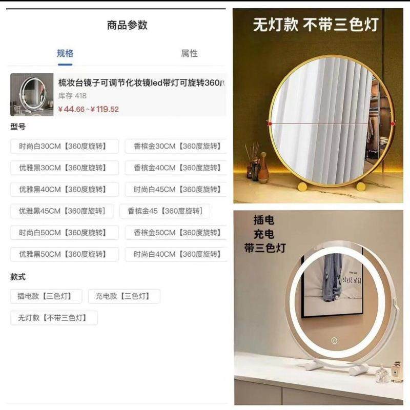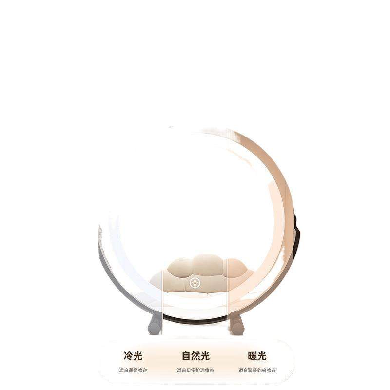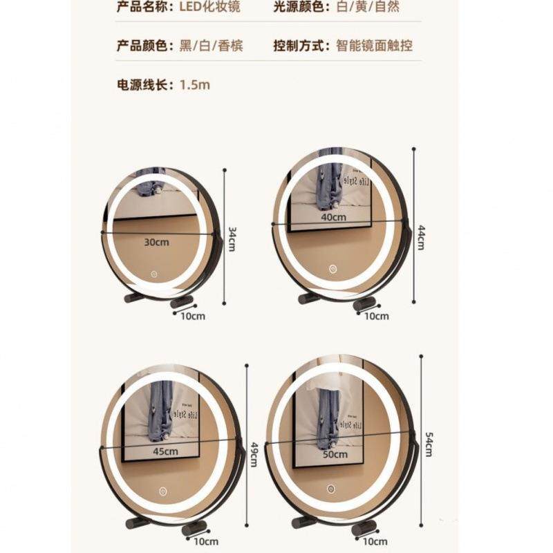 圆形化妆镜卧室桌面梳妆台带灯家用智能灯美妆镜宿舍网红风