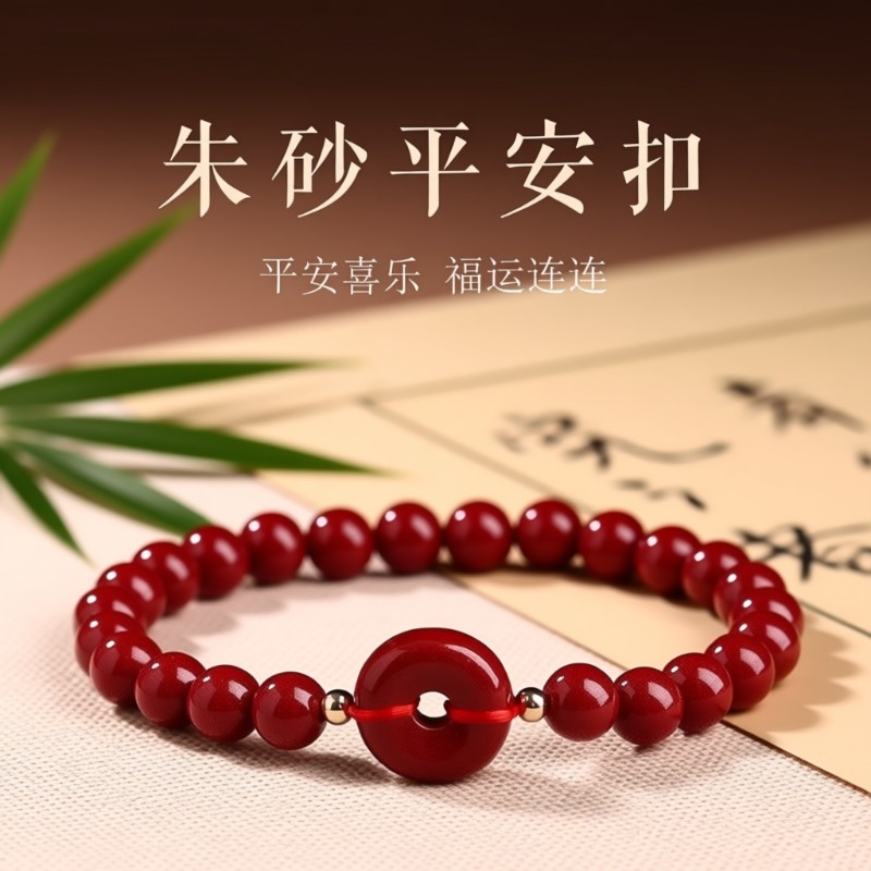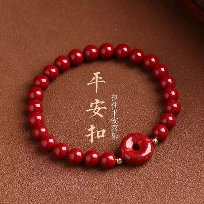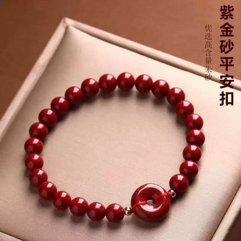 新年开运朱砂平安扣手串高含量紫金砂女士本命年红绳护身手链礼物