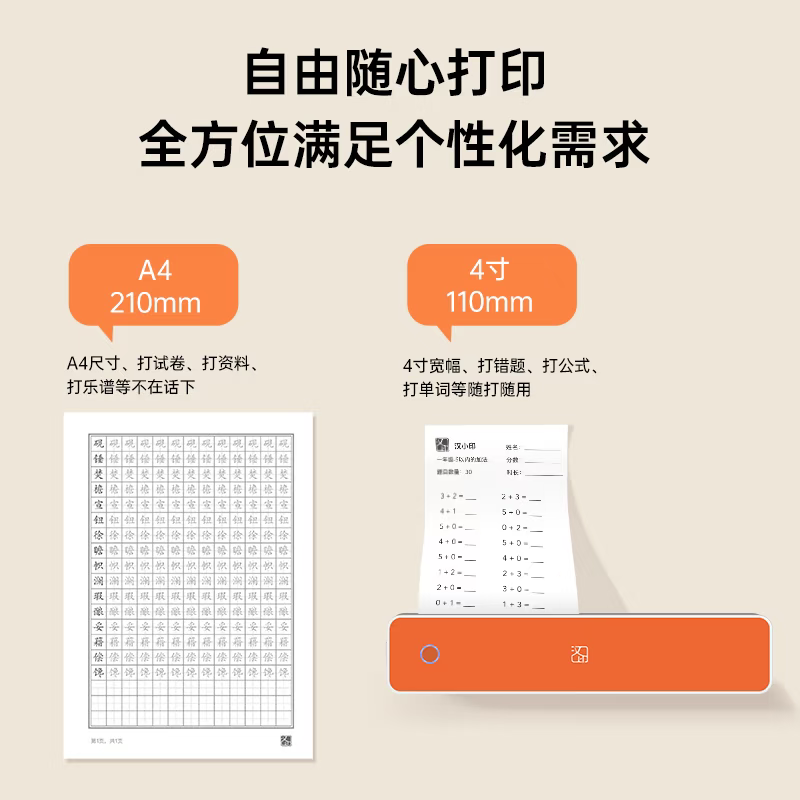 汉印便携无墨A4打印机MT666小型学生家用试卷错题整理热敏学习机手机蓝牙连接无线迷你便携学生作业