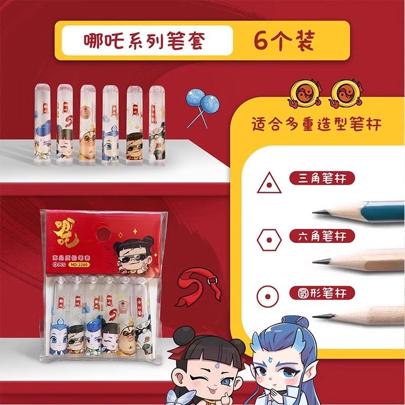 哪吒透明铅笔帽笔盖小学生铅笔保护套哪咤敖丙太乙真人申公豹笔盖高颜值创意卡通可爱动漫周边儿童文具