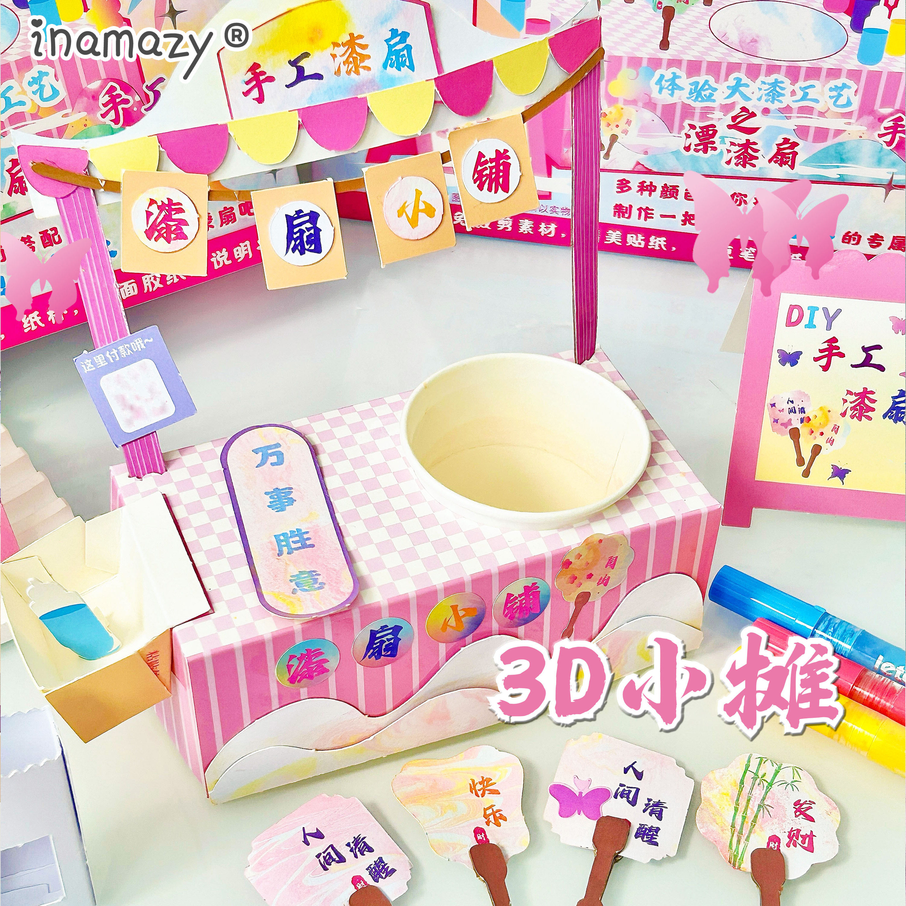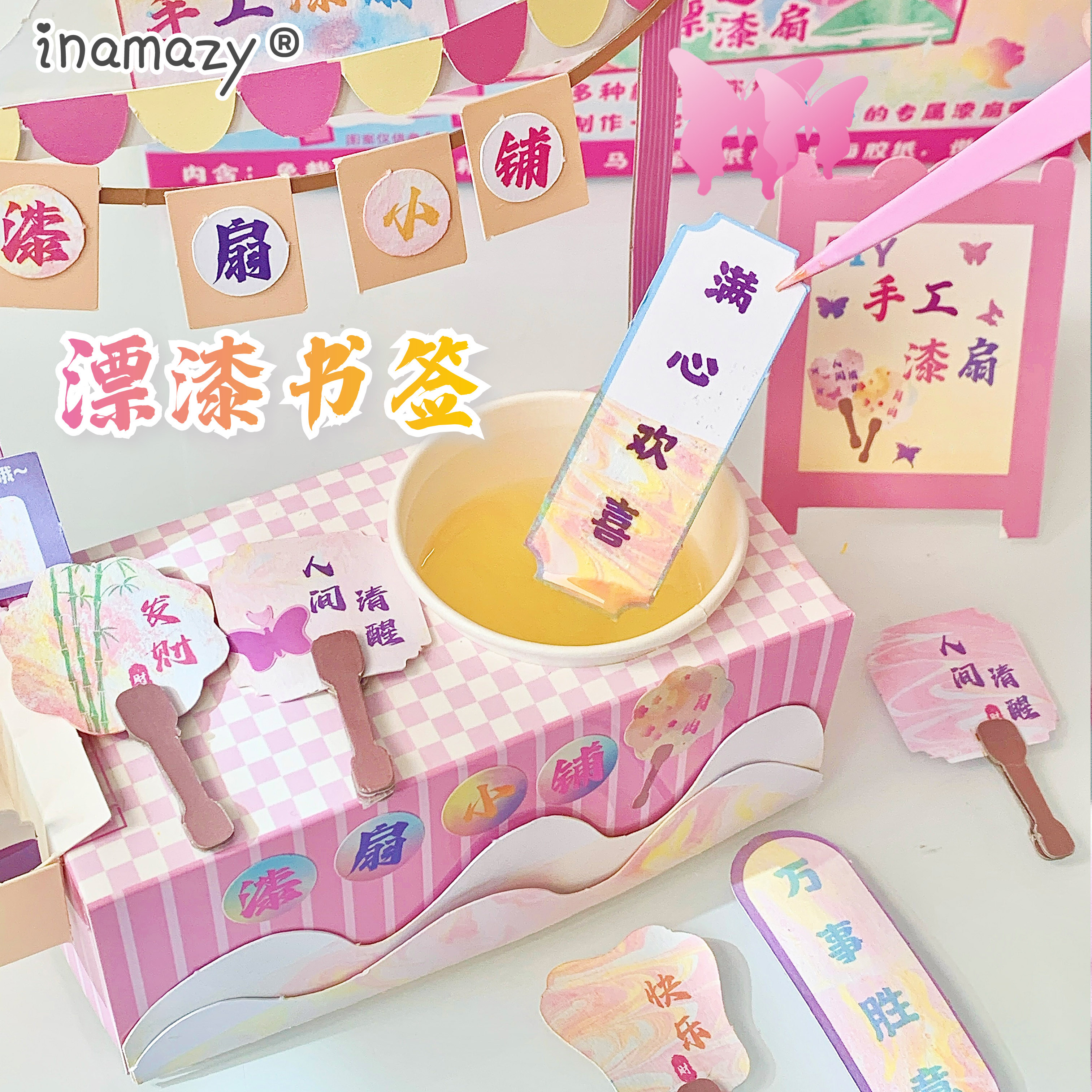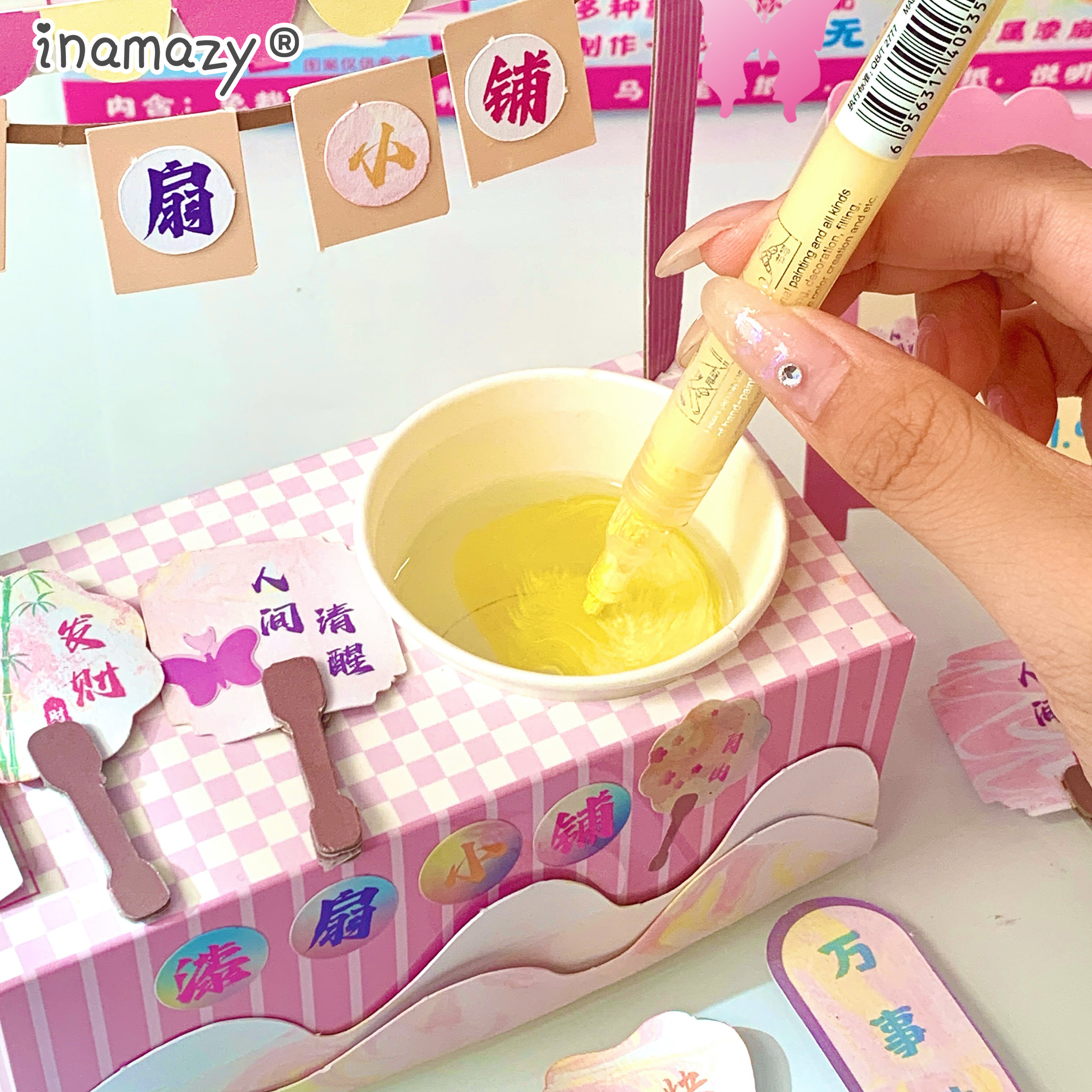 Inamazy迷你漆扇小铺DIY小手工颜料素材包儿童女孩玩具加厚宣纸带字团扇手绘古风非遗文化空白漆扇套装扇子