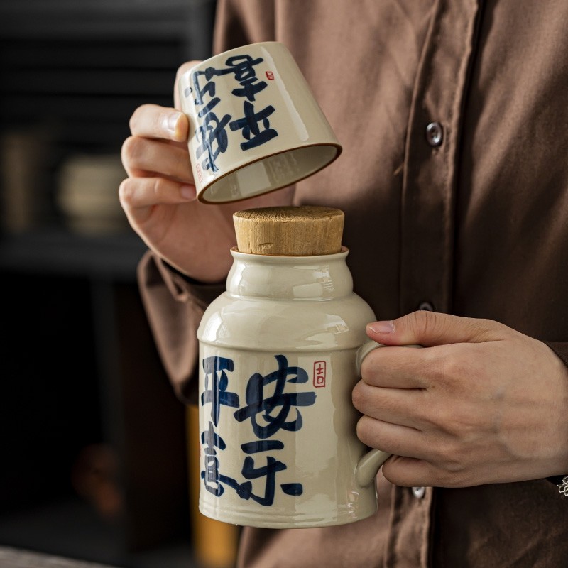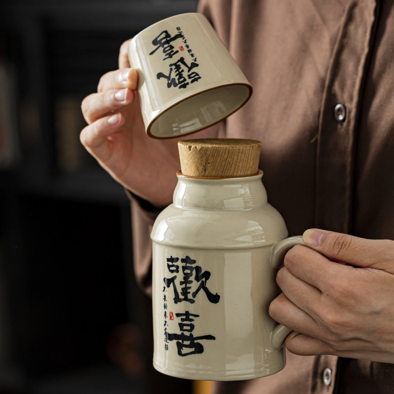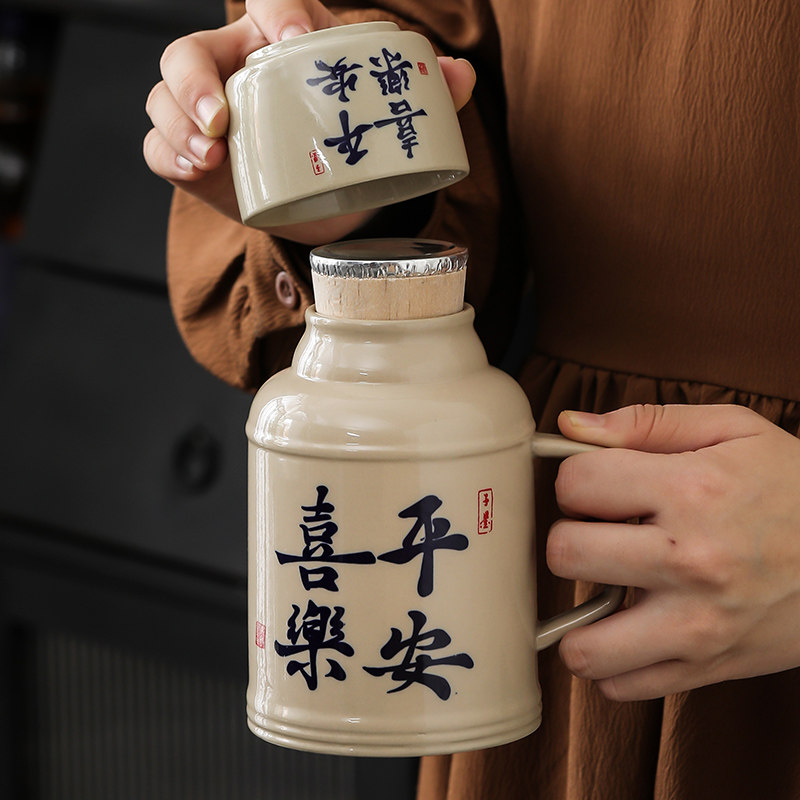 汝窑小暖壶焖泡茶杯喝水杯创意水杯办公室大容量马克杯带盖茶杯子