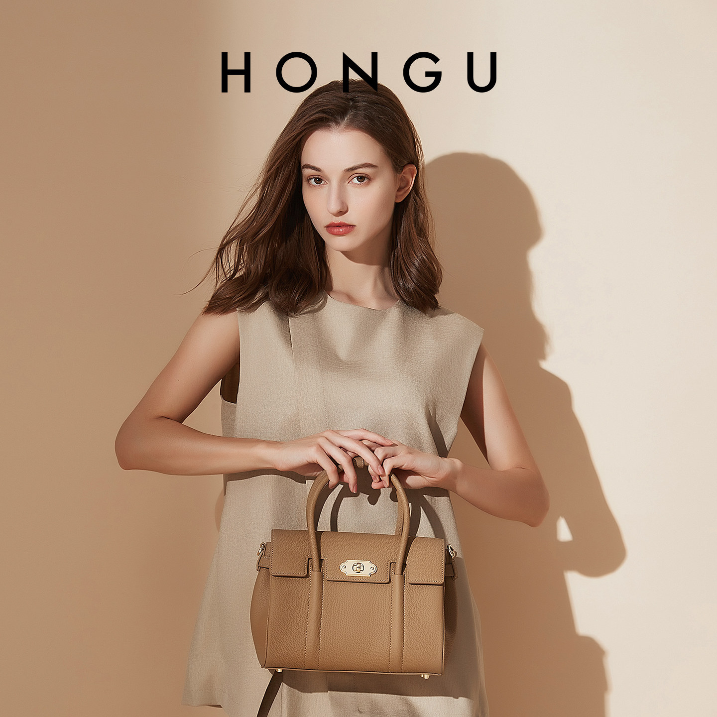 红谷包包女士新款真皮高级感单肩手提包通勤大容量斜挎手拎包女包