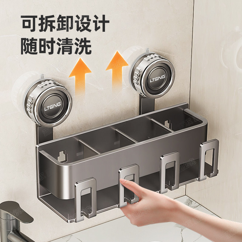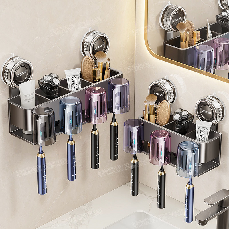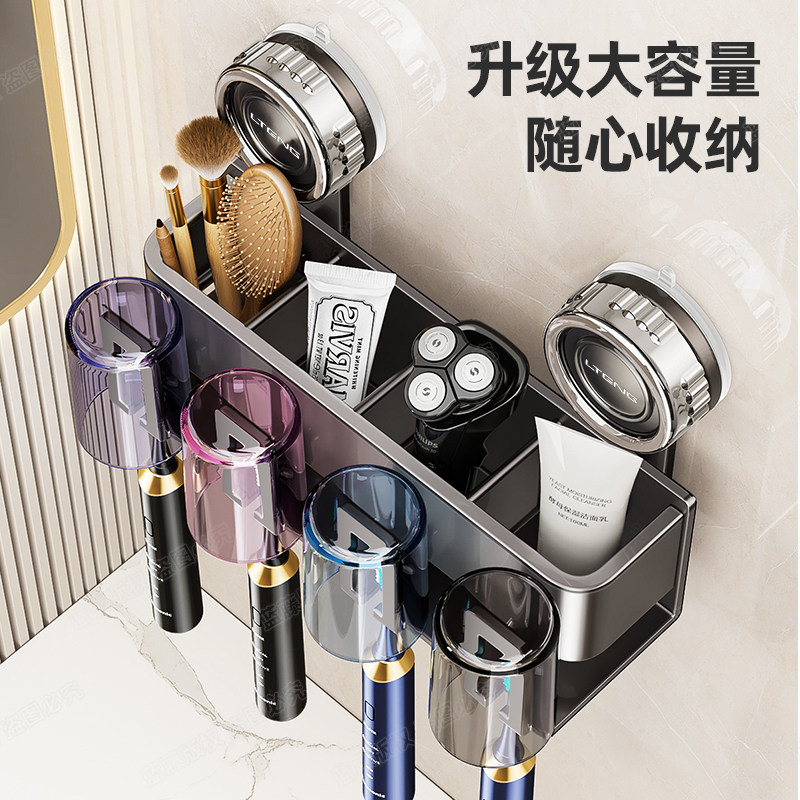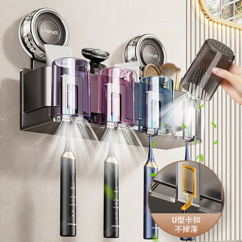 吸盘牙刷置物架漱口杯电动牙刷杯架壁挂式免打孔卫生间浴室挂架子